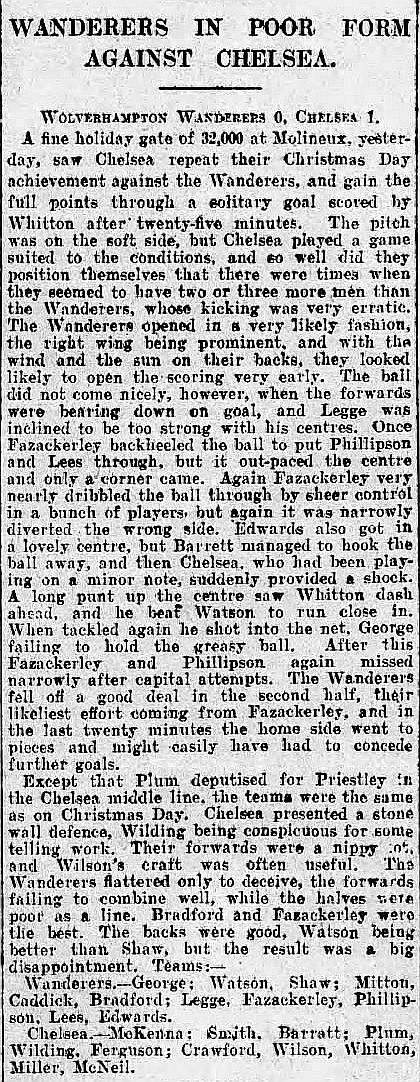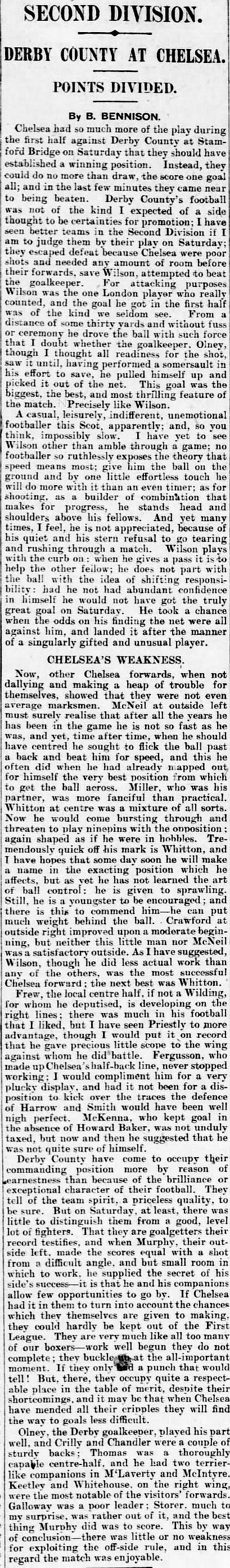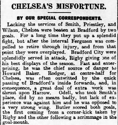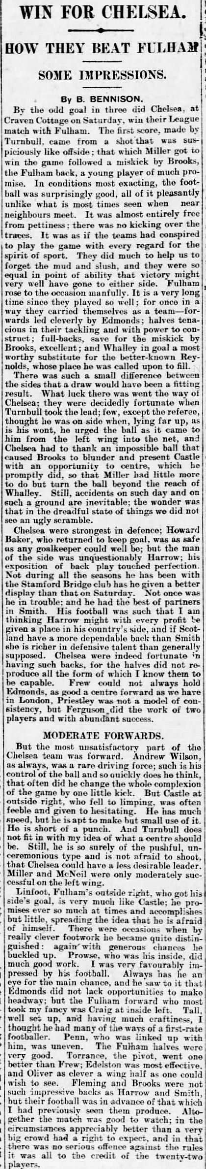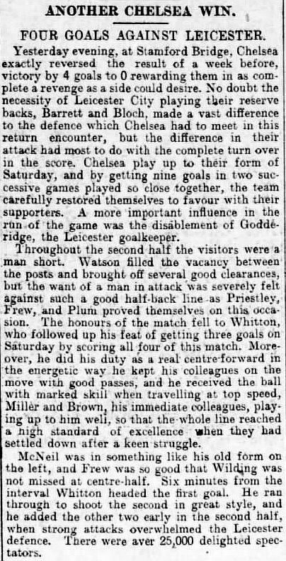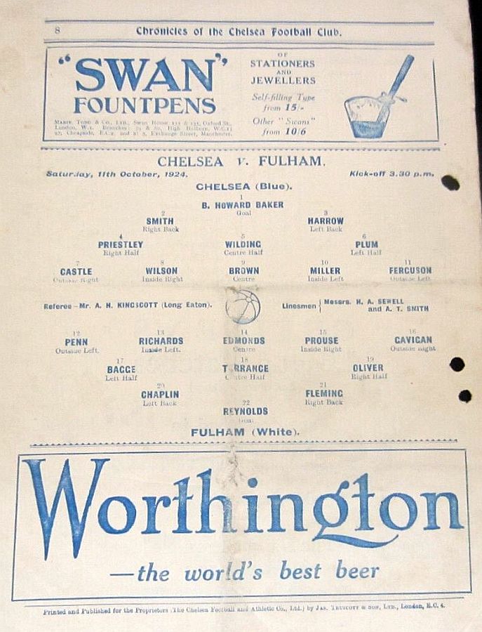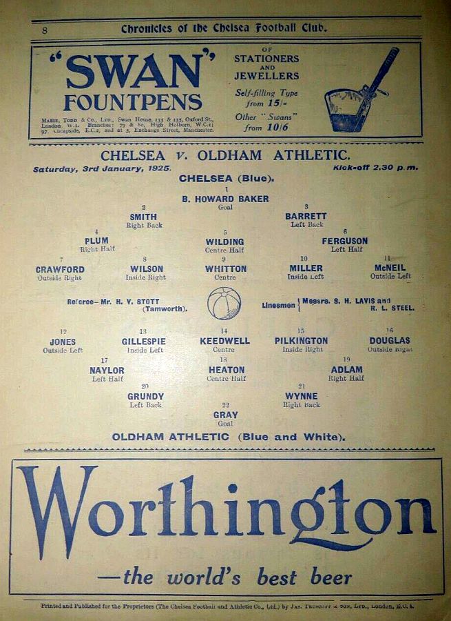 1 Benjamin Baker, 2 George Smith, 3 Jack Harrow, 4 John Priestley, 5 Arthur Sales, 6 Seth Plum, 7 Richard Jenkins, 8 Albert Thain, 9 Willie Brown, 10 Harry Wilding, 11 Willie Ferguson |