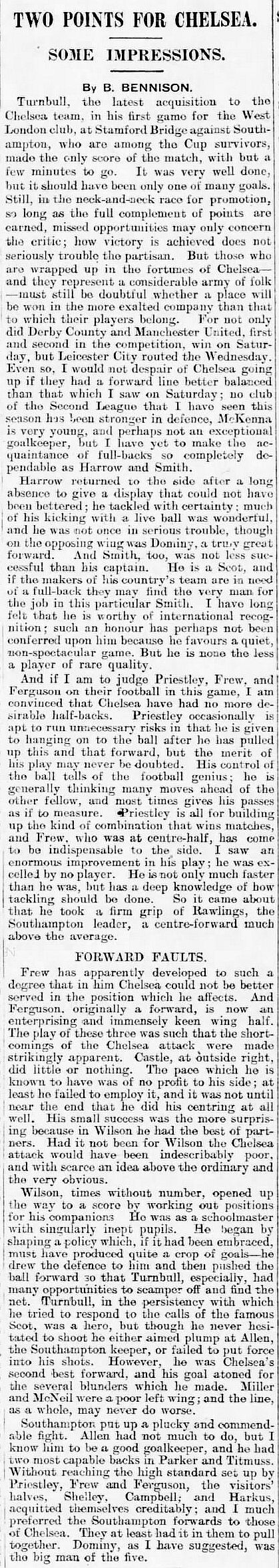 Lance Richardson, Mick Ridley, George Robson, Jim Metcalf, Alex Hird, Jock Hutcheson, Tommy Matthewson, Harry Wilson, Jack Oxberry, Norman Thompson, Sandy Trotter |