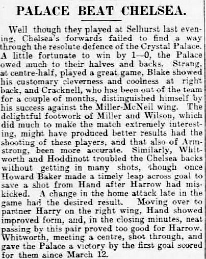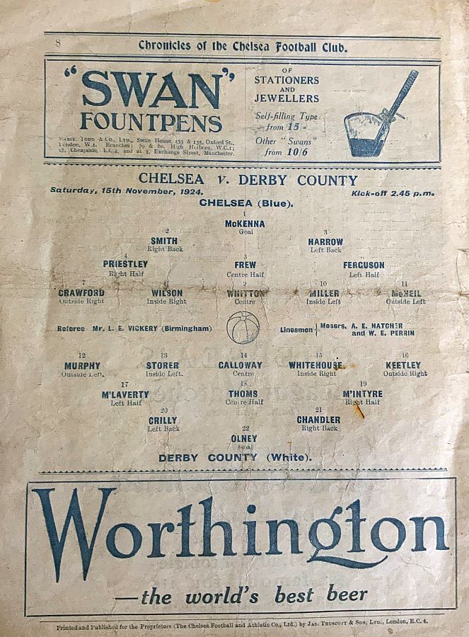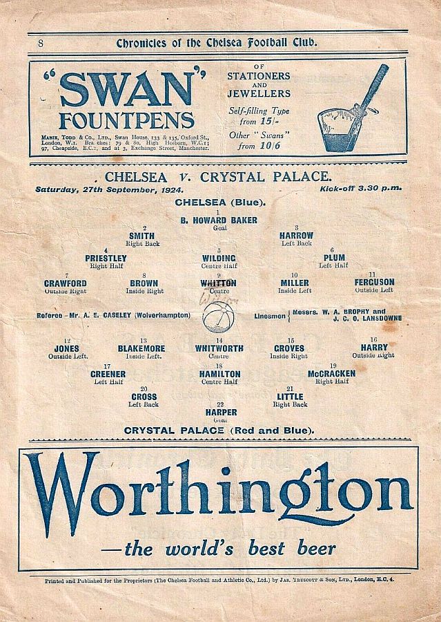 1 Benjamin Baker, 2 James Ashford, 3 Jack Harrow, 4 John Priestley, 5 Harry Wilding, 6 Seth Plum, 7 Jackie Crawford, 8 Willie Brown, 9 Arthur Sales, 10 Richard Jenkins, 11 Robert McNeil |