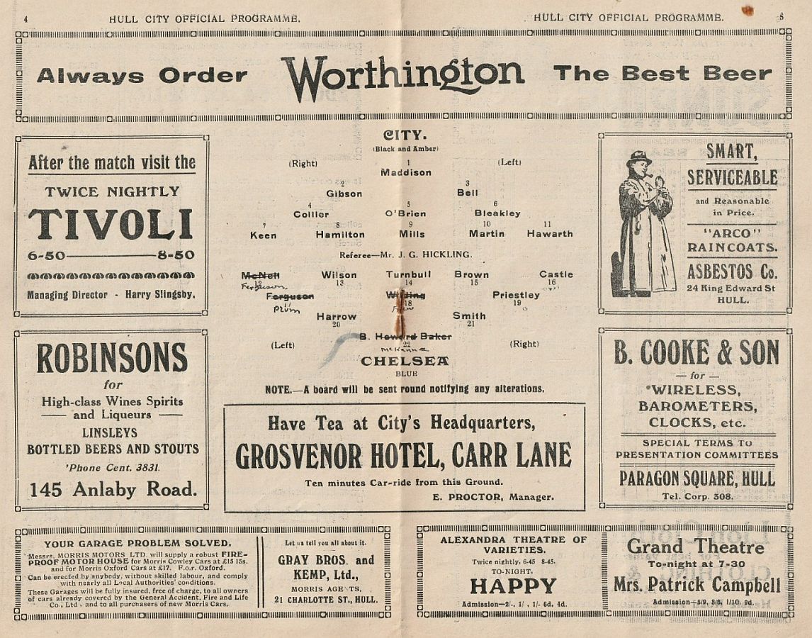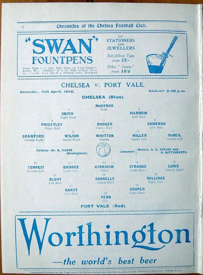 Tom Fern, Tommy Cooper, Jimmy Oakes, Billy Briscoe, Sidney Blunt, Arden Maddison, Jack Lowe, Tom Page, Wilf Kirkham, Alf Strange, Billy Tempest |