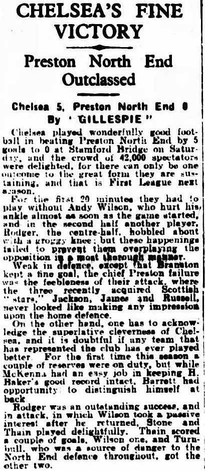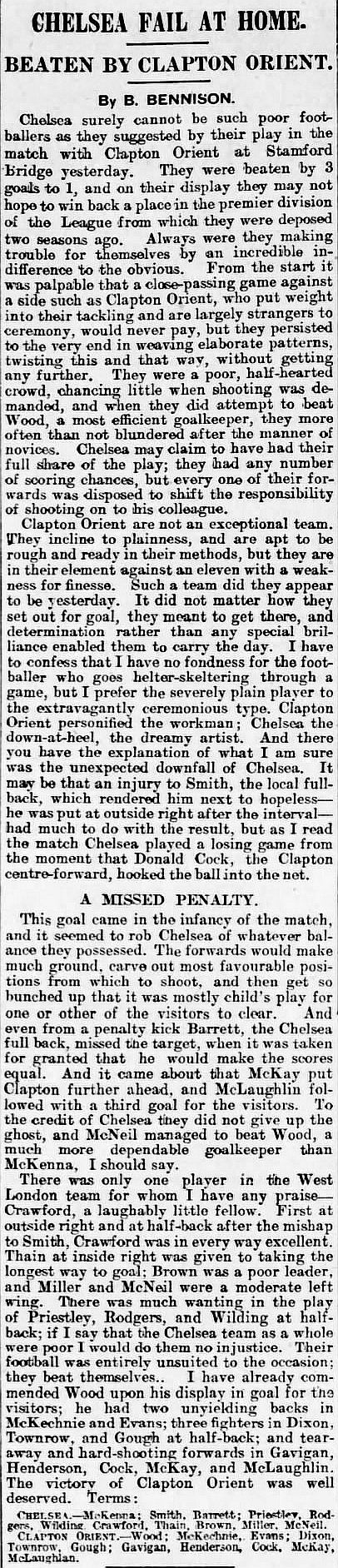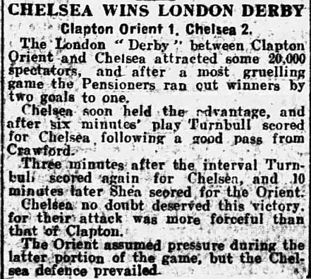Clapton Orient (0) 1 Chelsea (1) 2