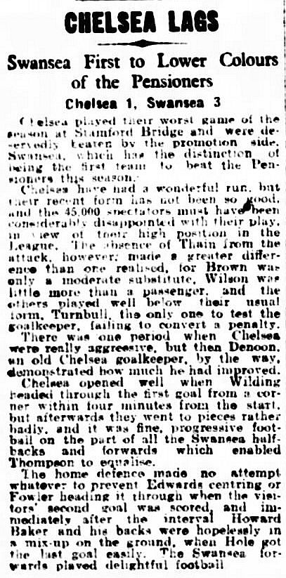 Swansea Town (0) 0 Chelsea (0) 0