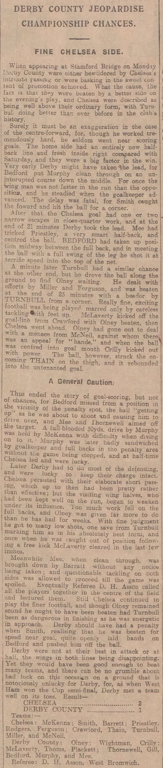 Chelsea (2) 2 Derby County (1) 1