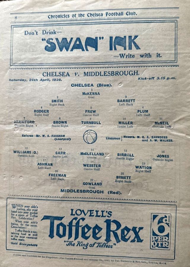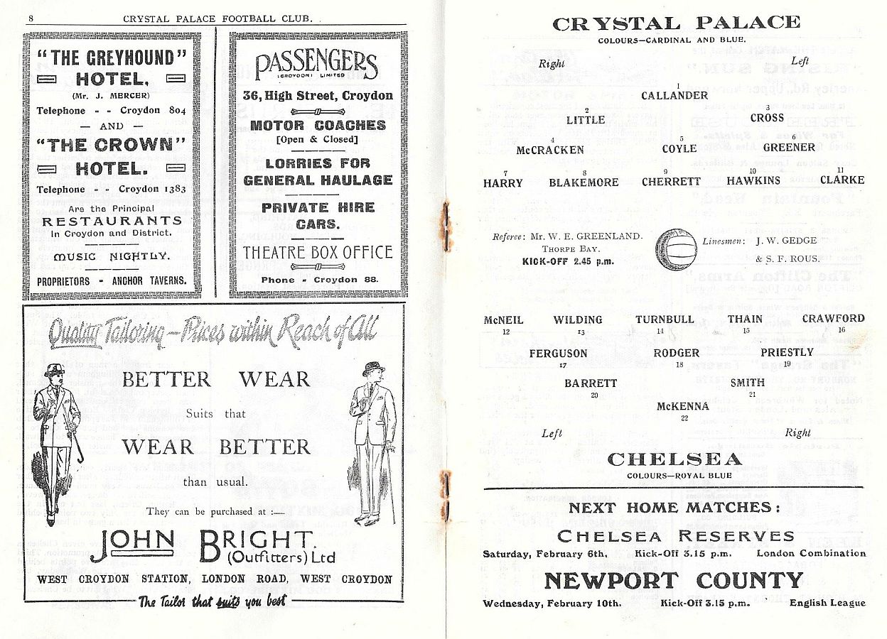 Tom McKenna, Reg Dyer, Alec Chaplin, Harry Bagge, Len Oliver, Bert Barrett, Frank Penn, Bill Prouse, Eddie Edmonds, Teddy Craig, Robert Ferguson |