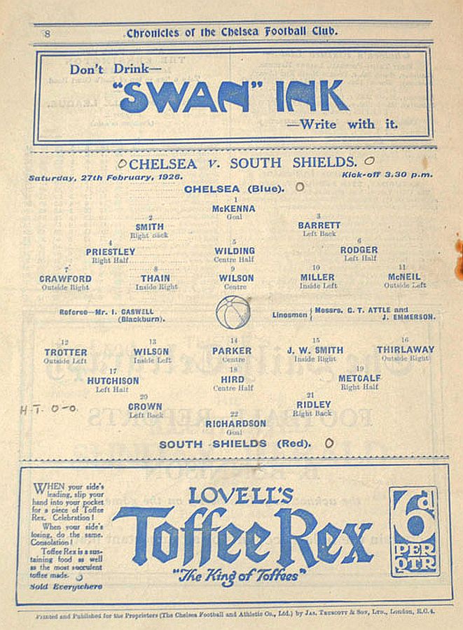 Chelsea (0) 0 South Shields (0) 0
