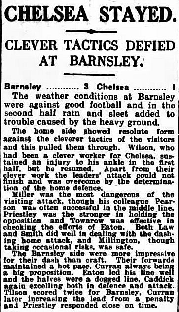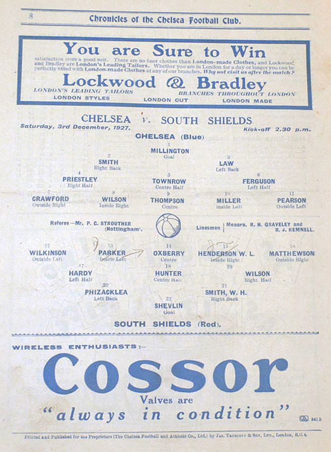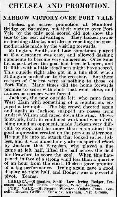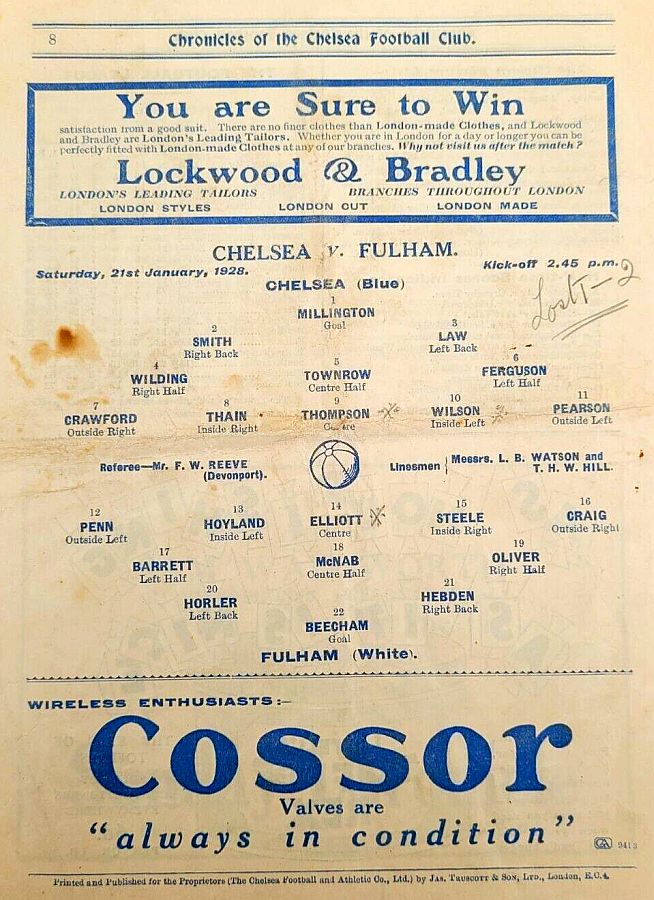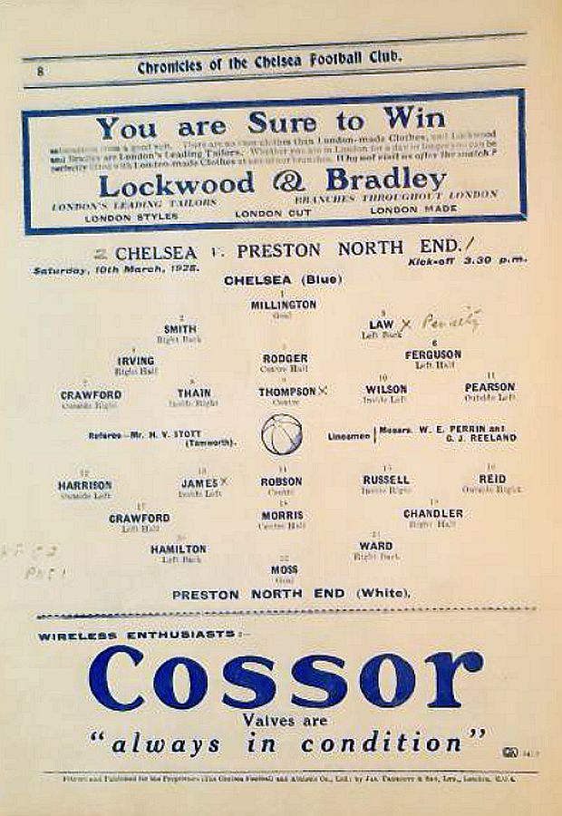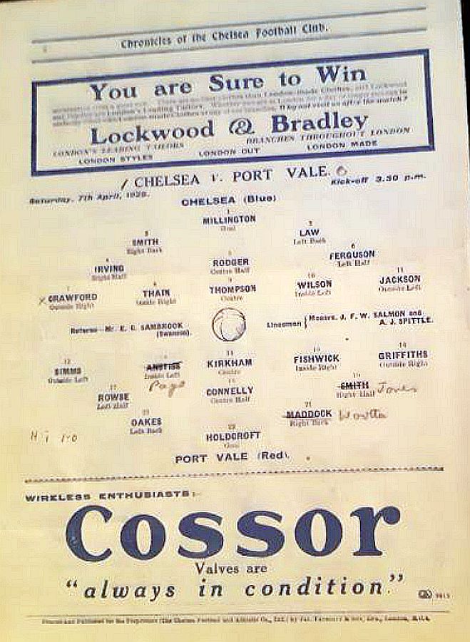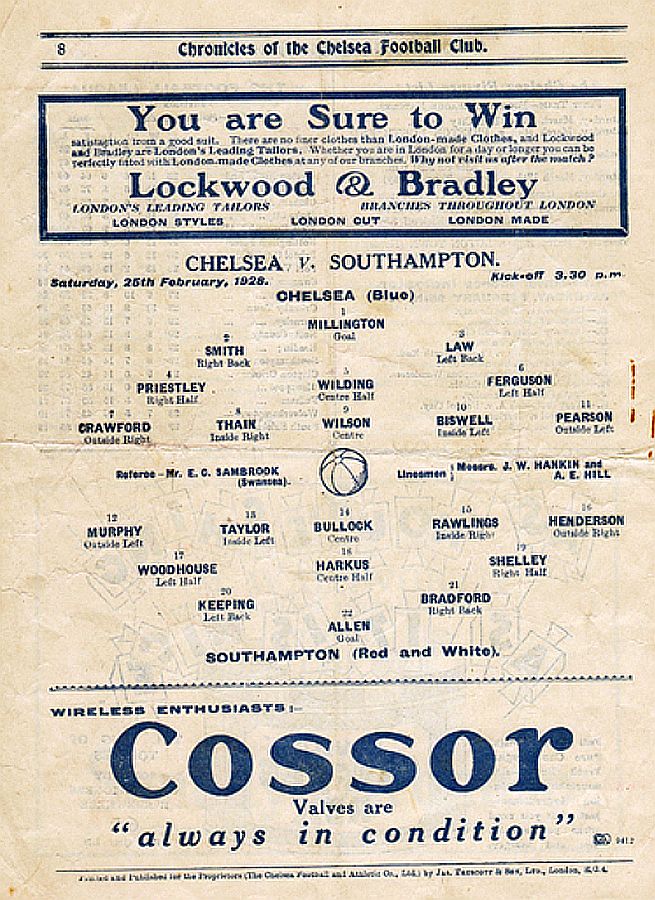 1 Sam Millington, 2 George Smith, 3 Tommy Law, 4 Harry Wilding, 5 John Townrow, 6 Willie Ferguson, 7 Jackie Crawford, 8 Albert Thain, 9 James Thompson, 10 Andy Wilson, 11 George Pearson |