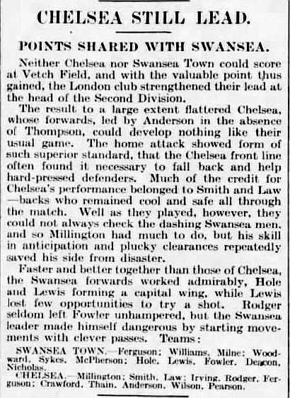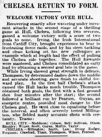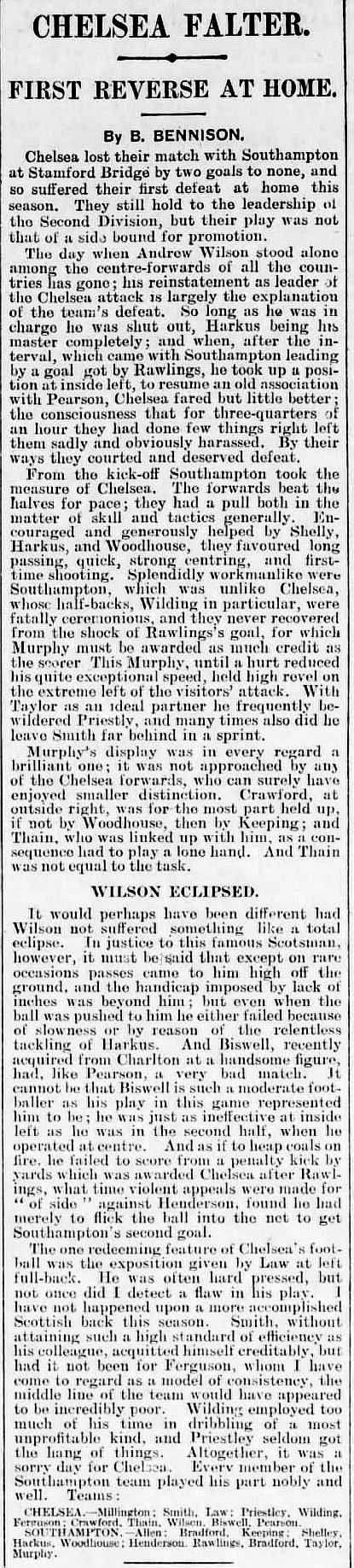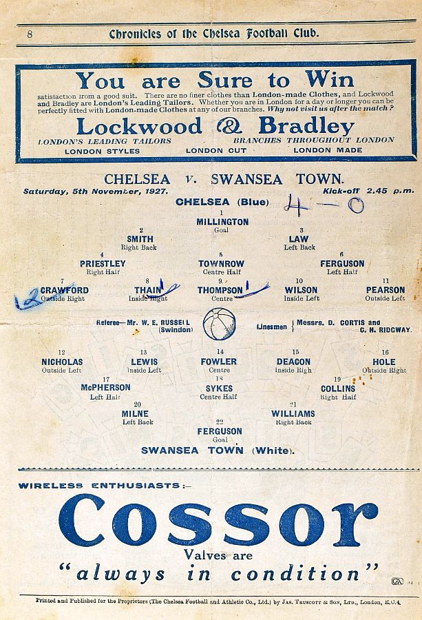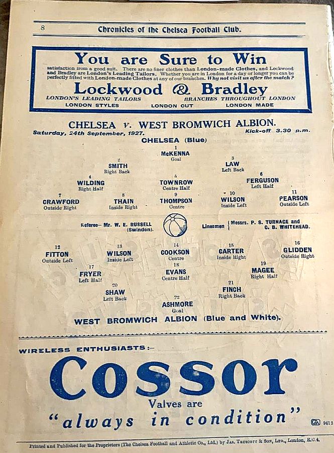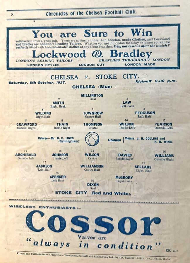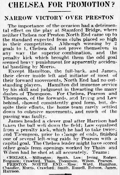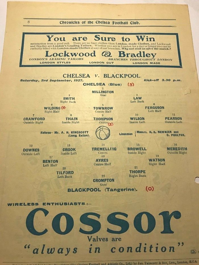 1 Sam Millington, 2 George Smith, 3 Tommy Law, 4 Harry Wilding, 5 John Townrow, 6 Willie Ferguson, 7 Jackie Crawford, 8 Albert Thain, 9 James Thompson, 10 Andy Wilson, 11 George Pearson |
