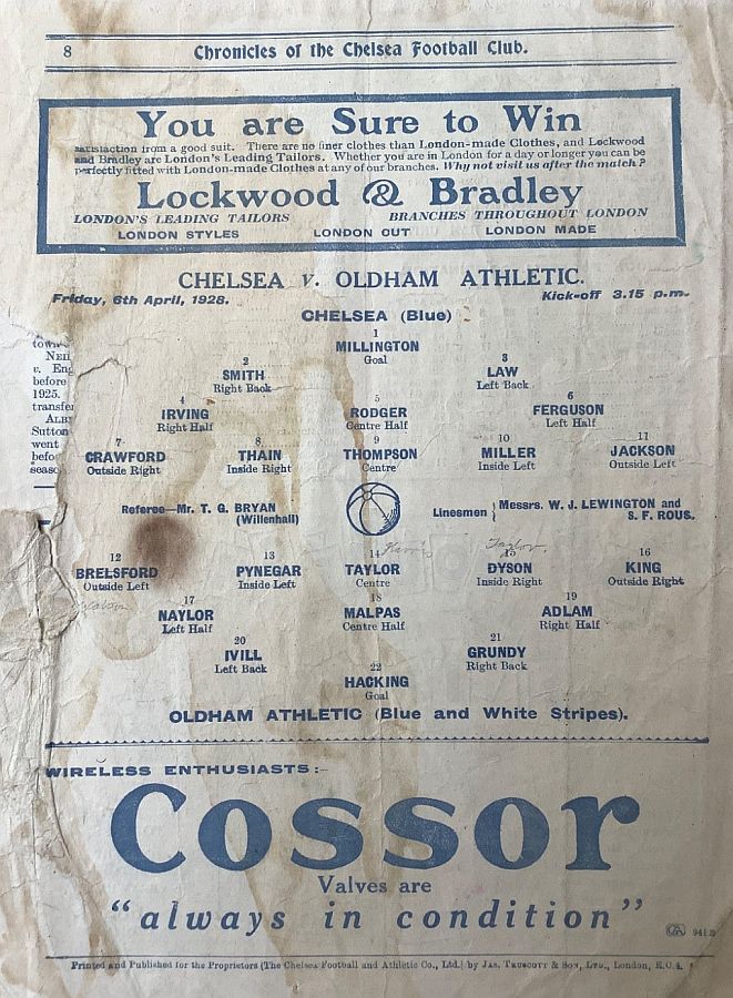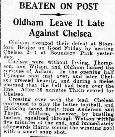 Chelsea (1) 2 Oldham Athletic (1) 1