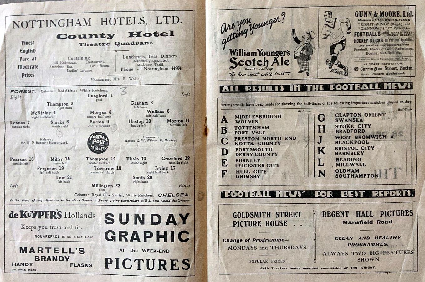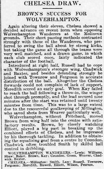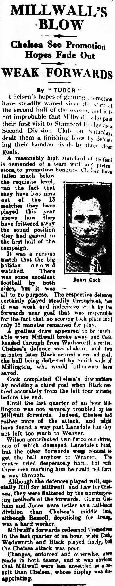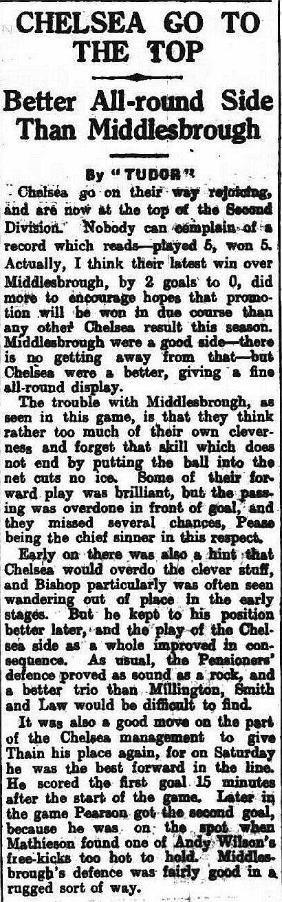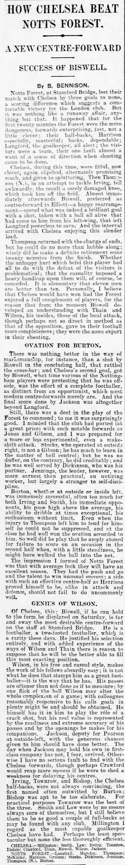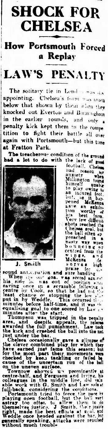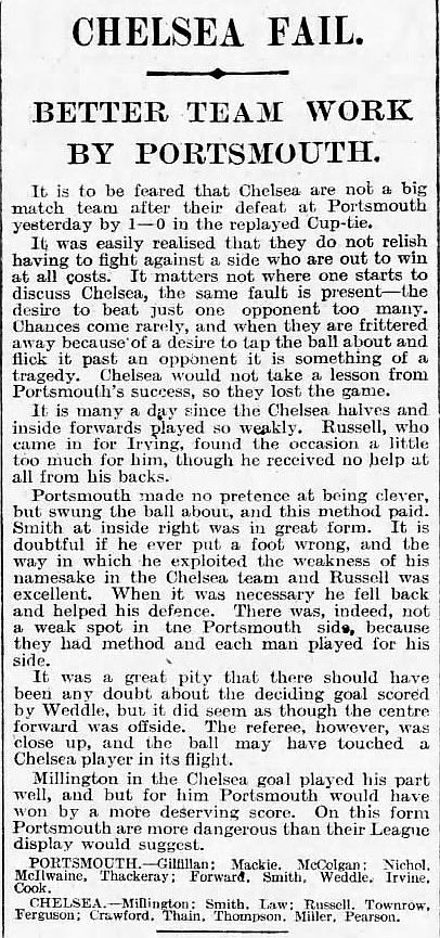 1 Sam Millington, 2 George Smith, 3 Tommy Law, 4 William Russell, 5 John Townrow, 6 Sid Bishop, 7 Jackie Crawford, 8 Reg Weaver, 9 Sidney Elliot, 10 Albert Thain, 11 Willie Jackson |