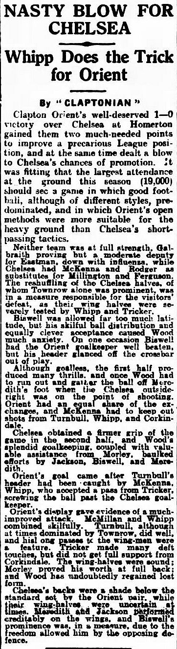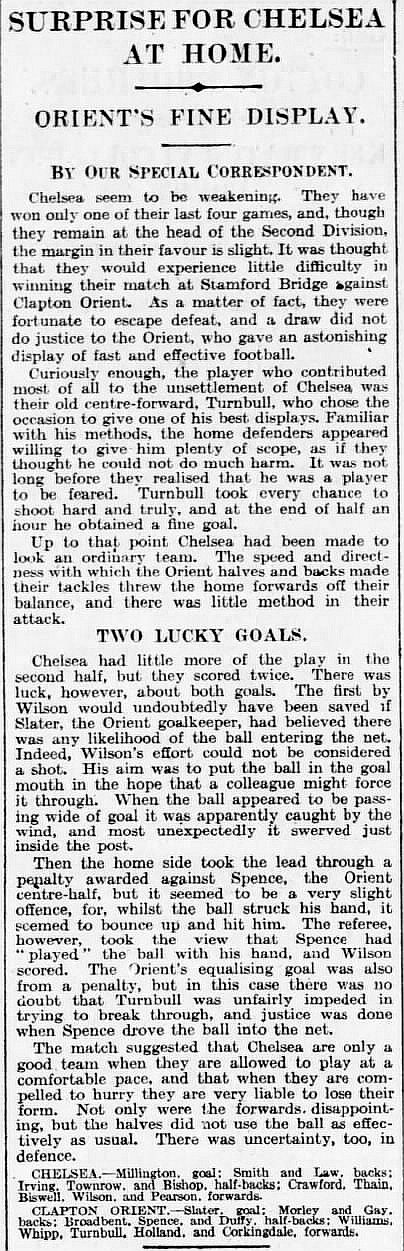 Chelsea (0) 2 Clapton Orient (1) 2
