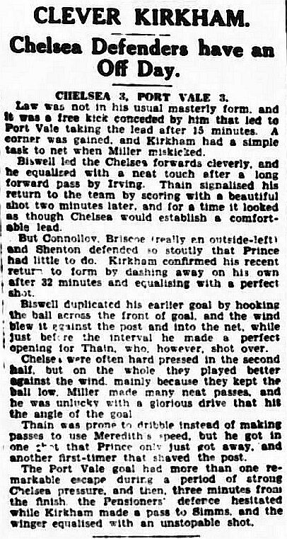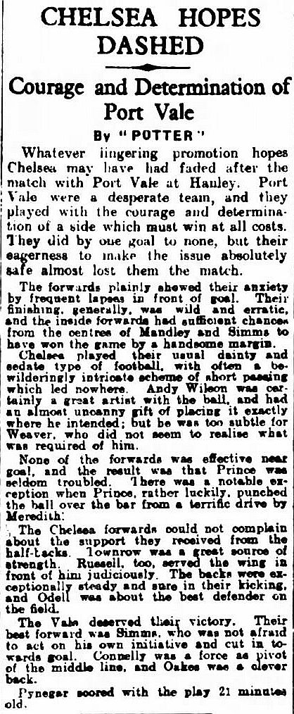 Port Vale (1) 1 Chelsea (0) 0