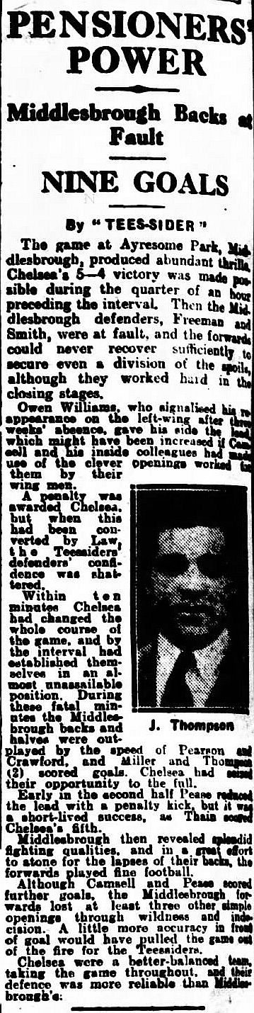 Jimmy Mathieson, Sid Jarvis, Reg Freeman, Joe Miller, Robert Ferguson, Joe Peacock, Billy Pease, Jackie Carr, George Camsell, Jock McKay, Owen Williams |