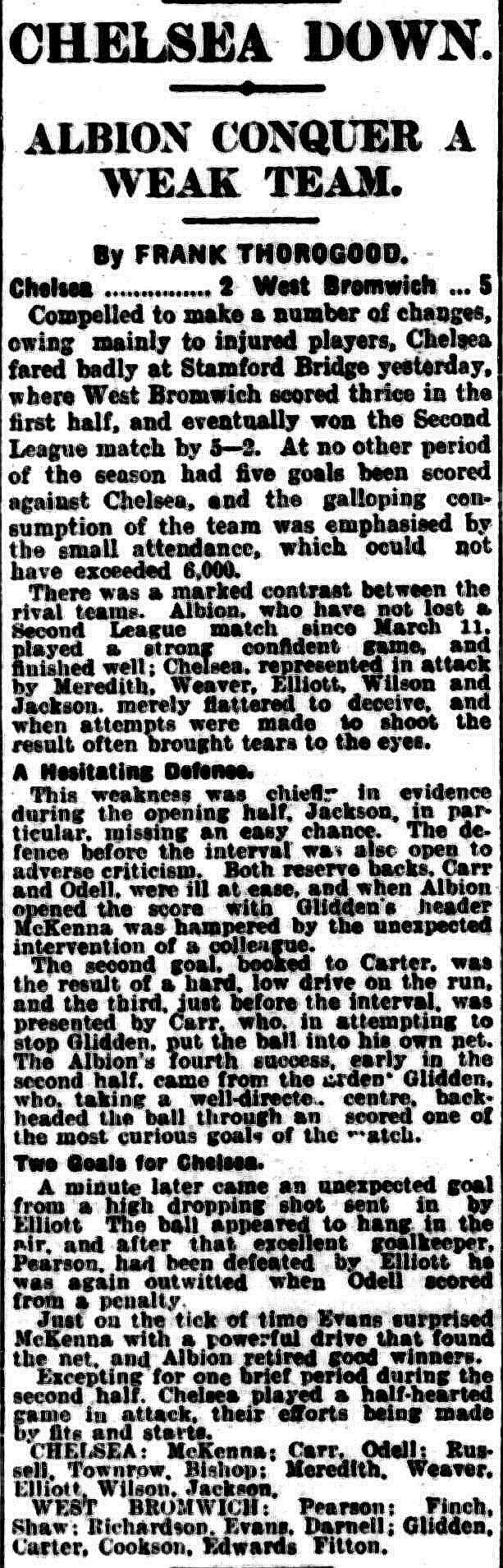 West Bromwich Albion (1) 3 Chelsea (0) 0