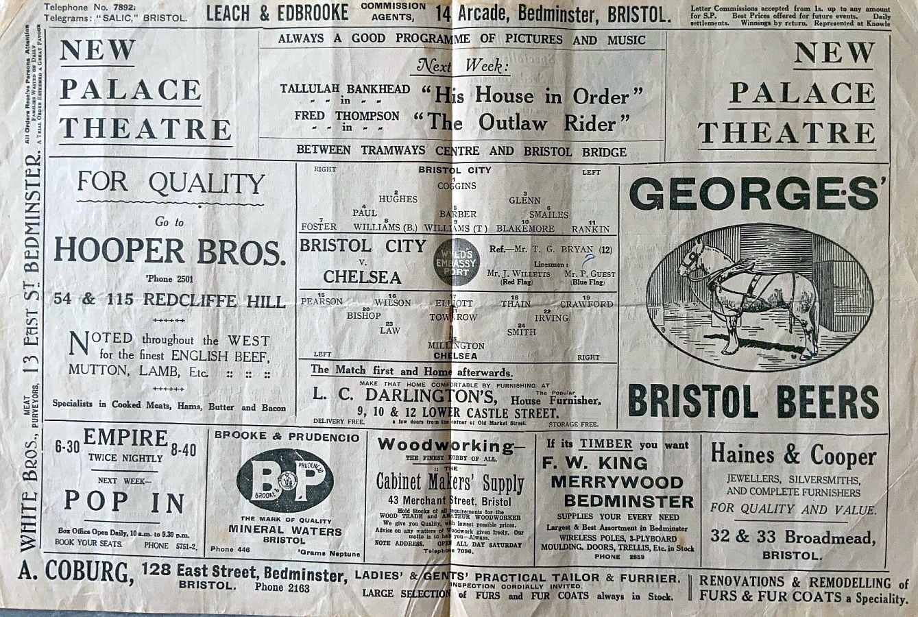 Billy Coggins, Dick Hughes, Ernest Glenn, John Paul, Stan Barber, Andy Smailes, Jackie Foster, Bertie Williams, Tommy Williams, Cecil Blakemore, Arthur Rankin |