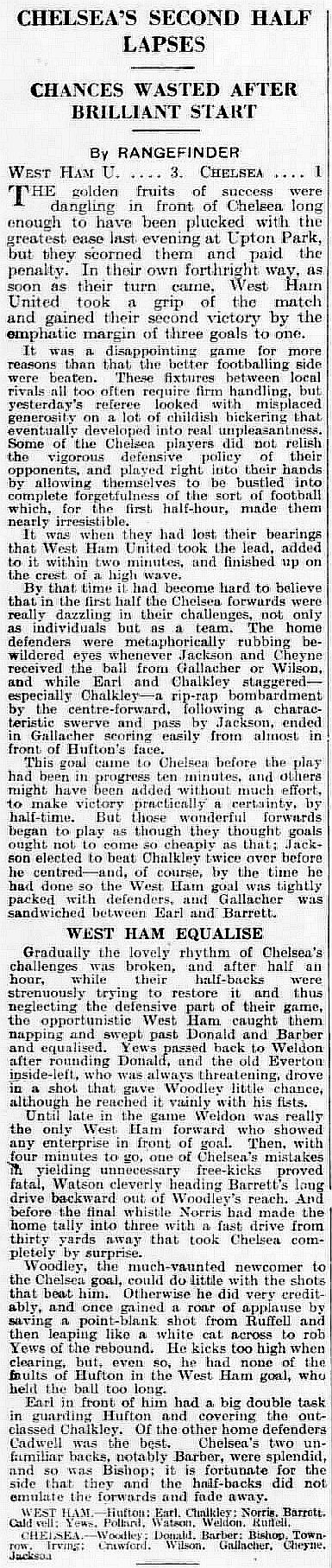 West Ham United (1) 3 Chelsea (1) 1