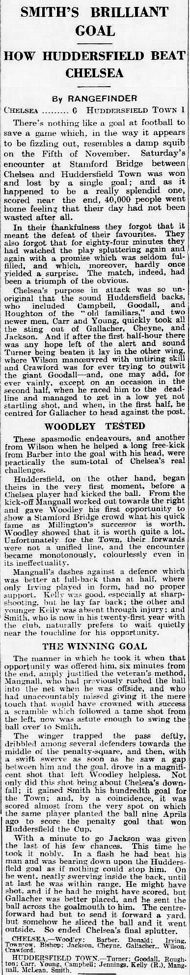 Chelsea (0) 0 Huddersfield Town (0) 1