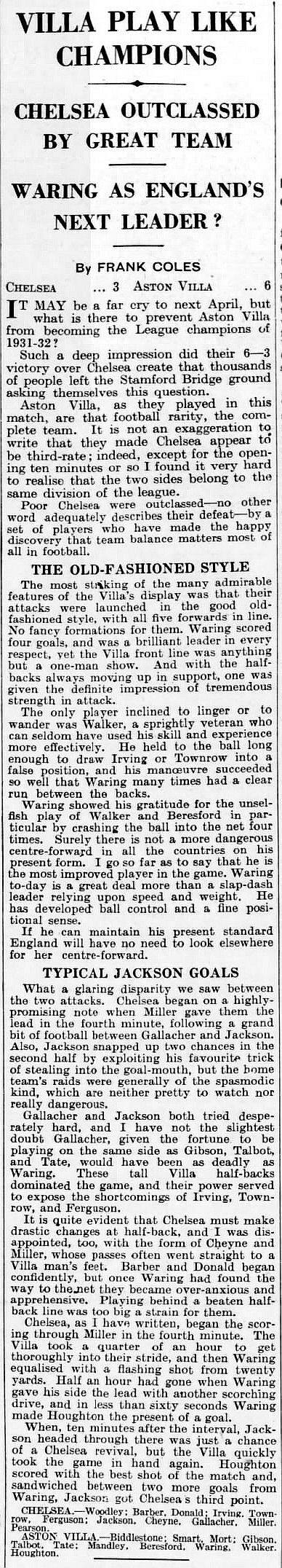 Chelsea (1) 3 Aston Villa (3) 6