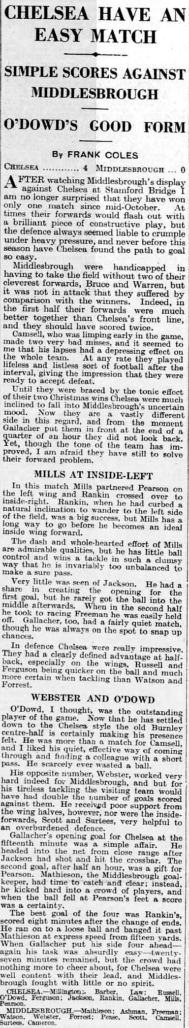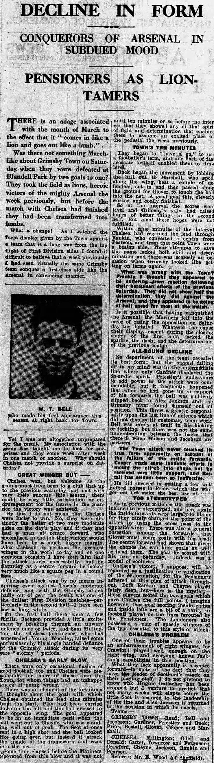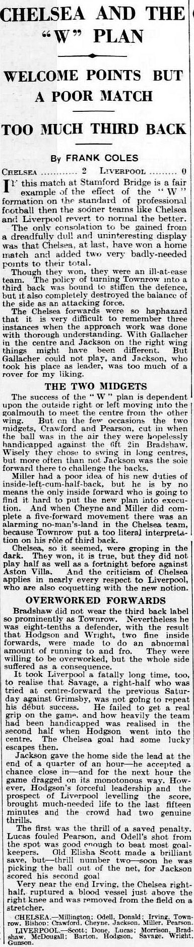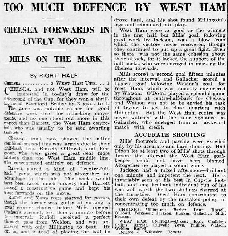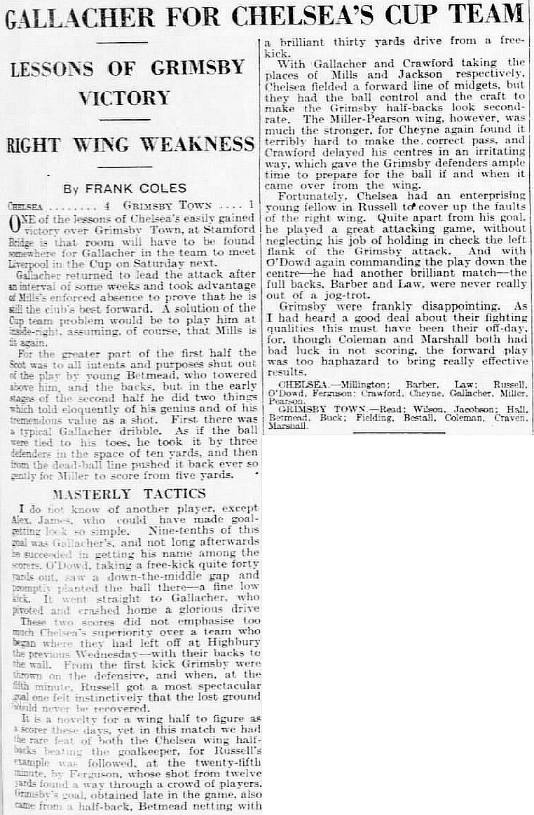 1 Sam Millington, 2 George Barber, 3 Tommy Law, 4 William Russell, 5 Peter O'Dowd, 6 Sid Bishop, 7 Jackie Crawford, 8 John Rankin, 9 Hughie Gallacher, 10 Harold Miller, 11 Wilf Chitty |