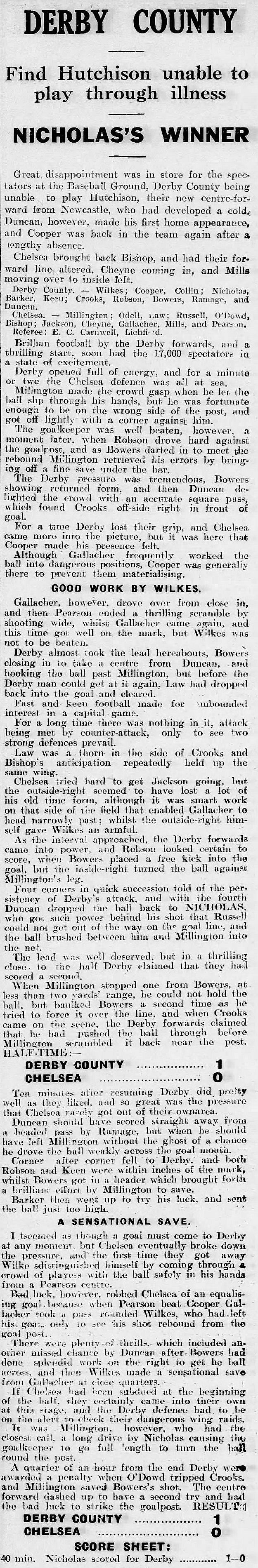 Derby County (1) 1 Chelsea (0) 0
