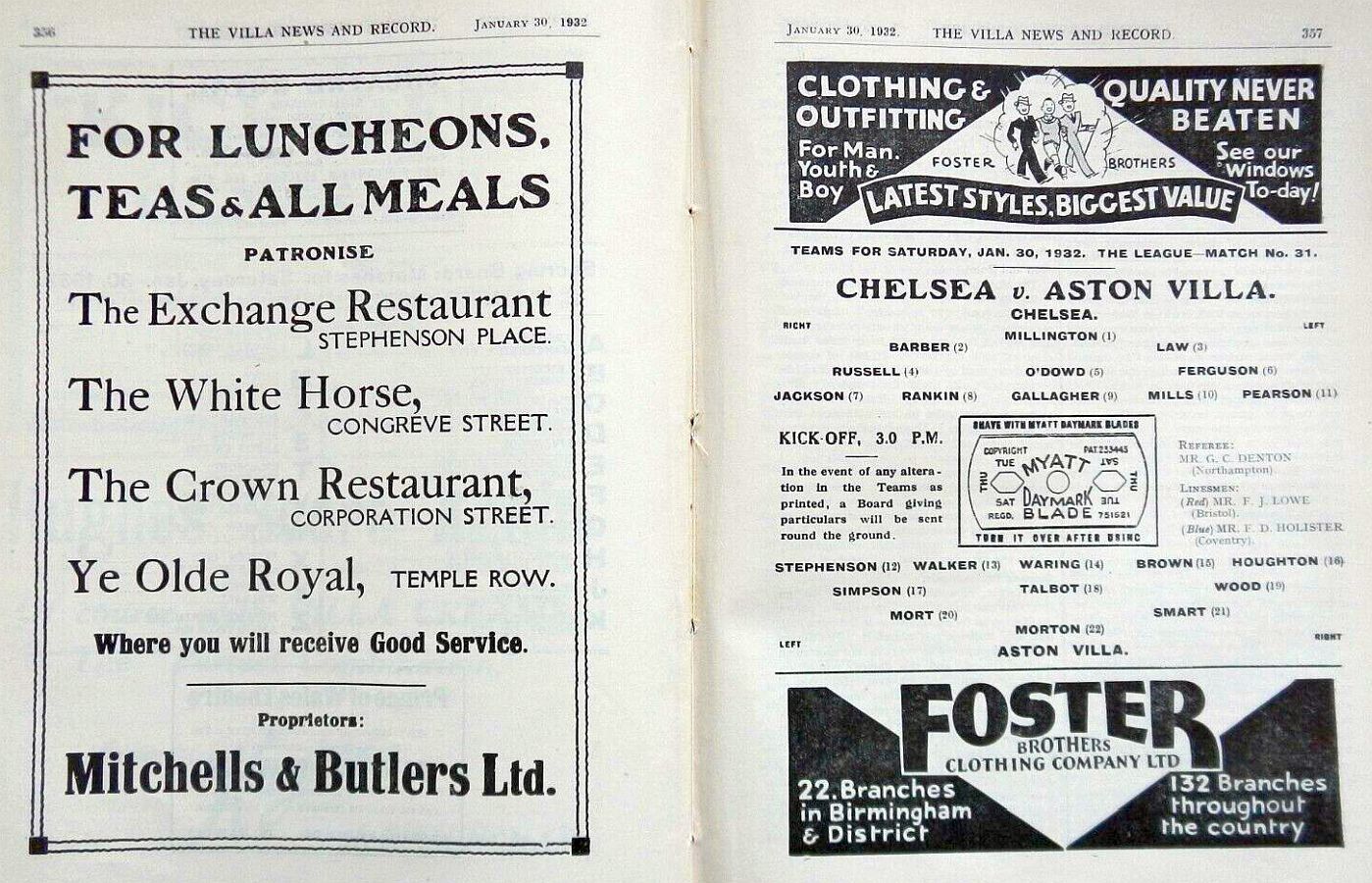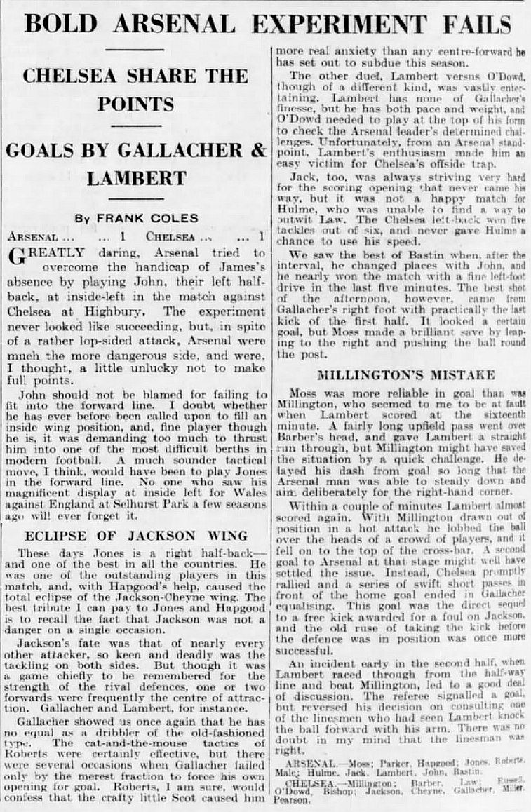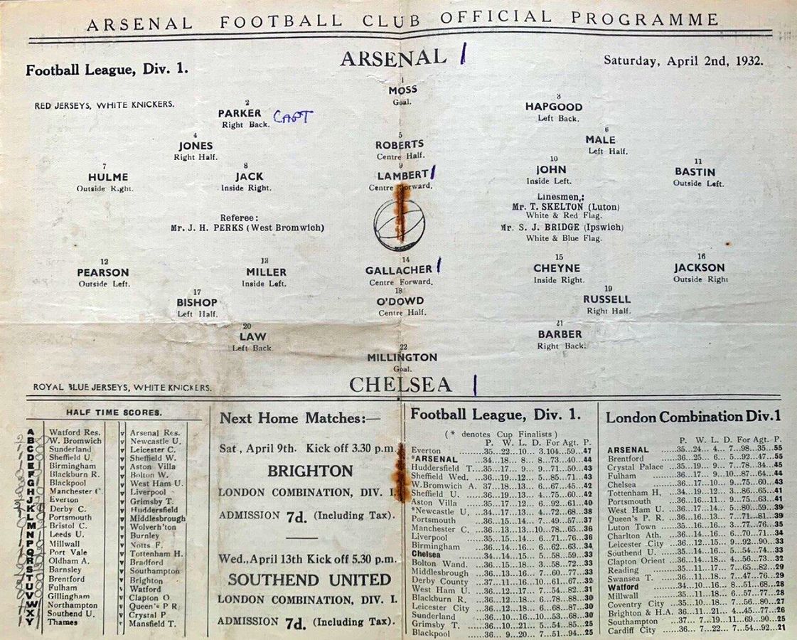 Moss, Parker, Hapgood, Jones, Roberts, Male, Hulme, Jack, Lambert, John, Bastin |