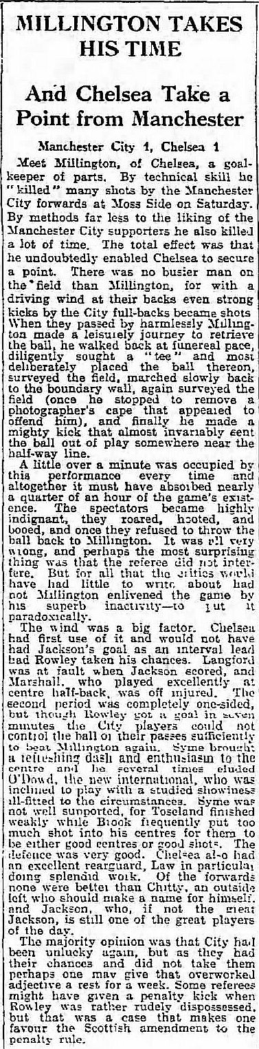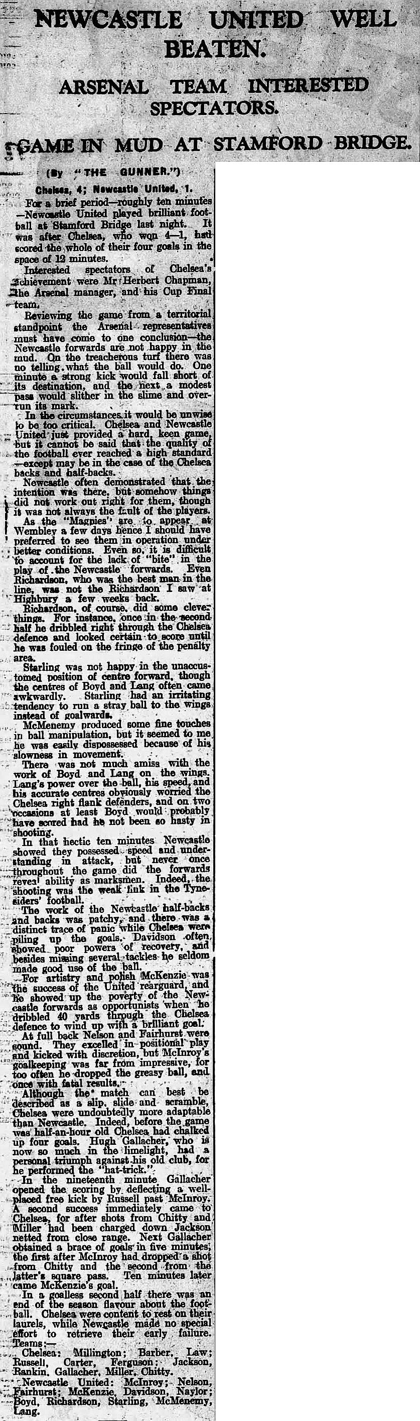 1 Sam Millington, 2 George Smith, 3 Robert Carter, 4 Sam Irving, 5 John Townrow, 6 Sid Bishop, 7 Alex Jackson, 8 Jackie Crawford, 9 Hughie Gallacher, 10 Harold Miller, 11 George Pearson |
