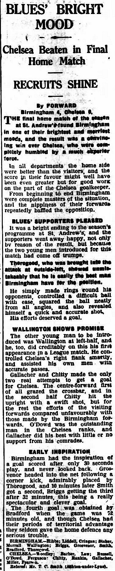 Birmingham (3) 4 Chelsea (0) 0