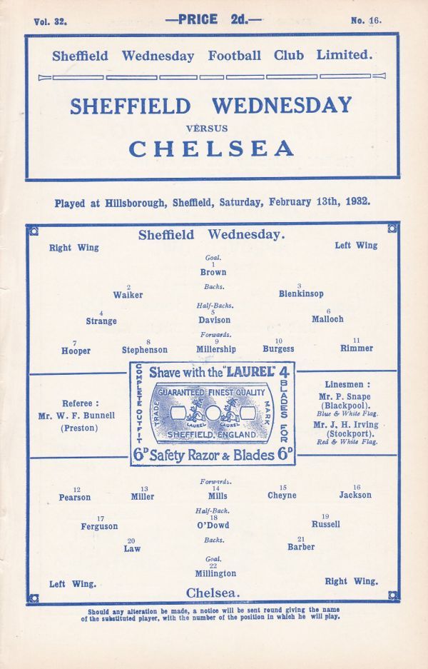 Chelsea (2) 2 Sheffield Wednesday (1) 3