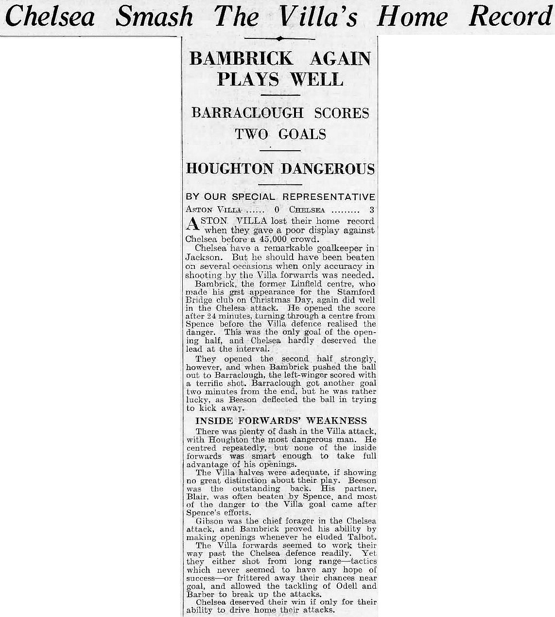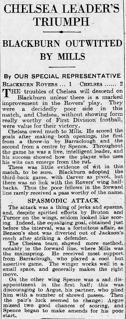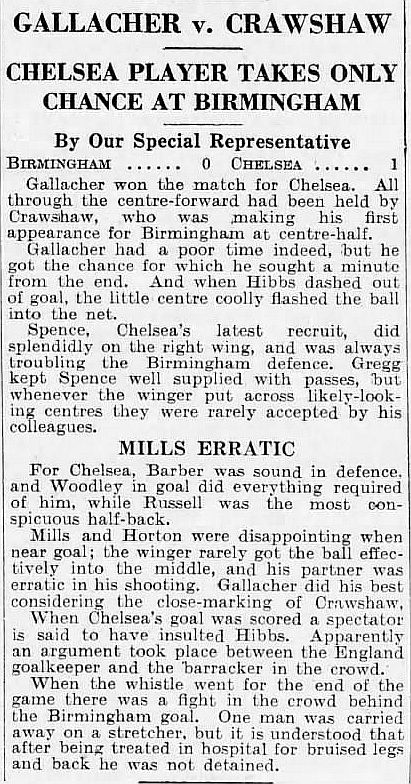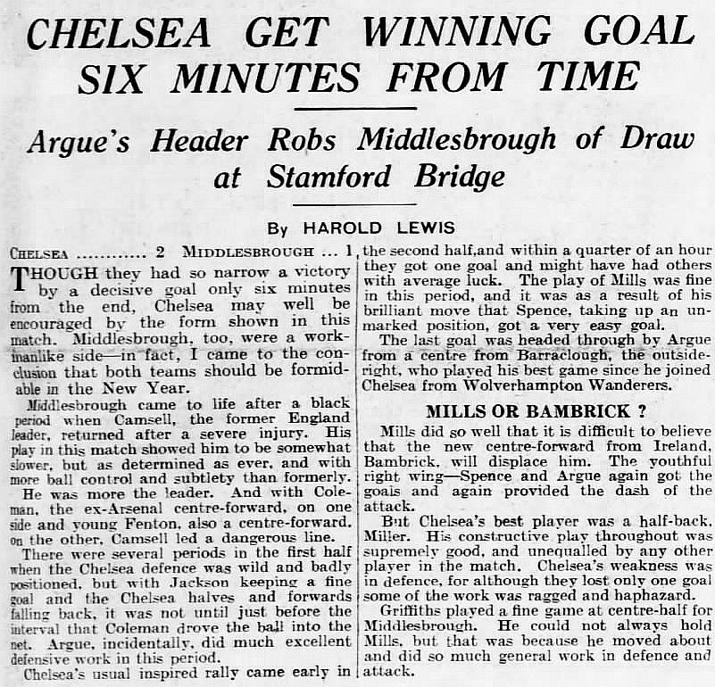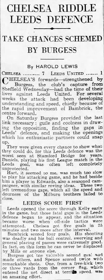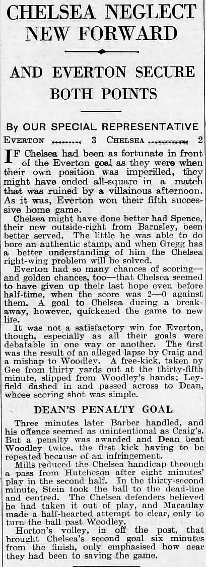 1 Vic Woodley, 2 Leslie Odell, 3 Bob MacAulay, 4 William Russell, 5 Allan Craig, 6 Harold Miller, 7 Eric Oakton, 8 Hughie Gallacher, 9 George Mills, 10 George Gibson, 11 Jack Horton |