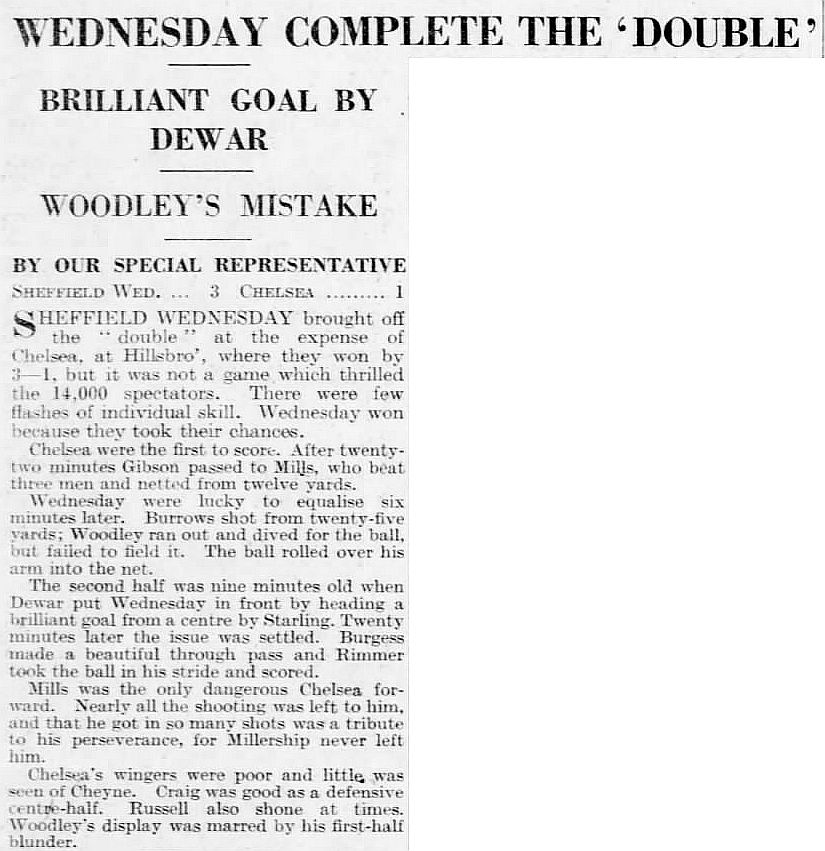Chelsea (1) 1 Sheffield Wednesday (1) 2