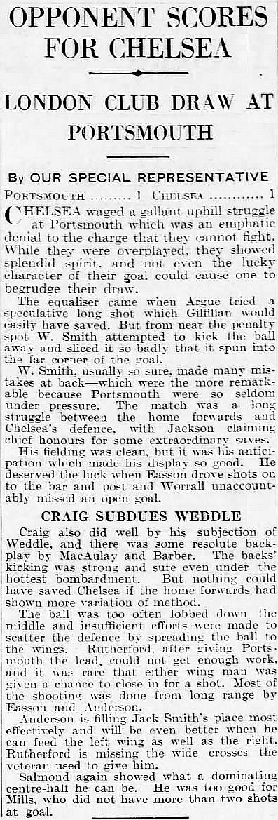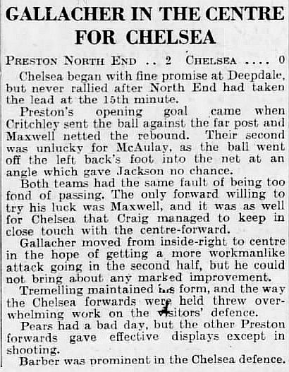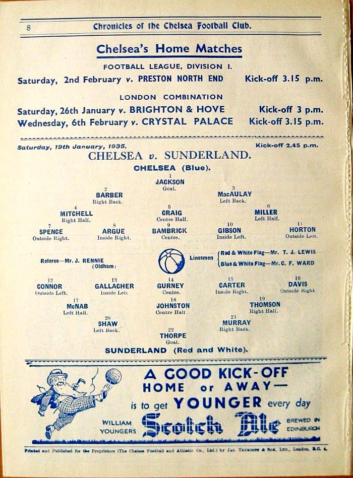 1 John Jackson, 2 George Barber, 3 Bob MacAulay, 4 William Russell, 5 Allan Craig, 6 Harold Miller, 7 Eric Oakton, 8 Hughie Gallacher, 9 George Mills, 10 George Gibson, 11 Jack Horton |