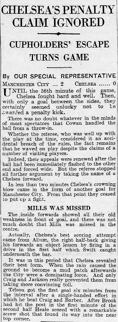 Frank Swift, Billy Dale, Sam Barkas, Jack Percival, Sam Cowan, Jackie Bray, Ernie Toseland, Jimmy Heale, Fred Tilson, Alex Herd, Eric Brook |