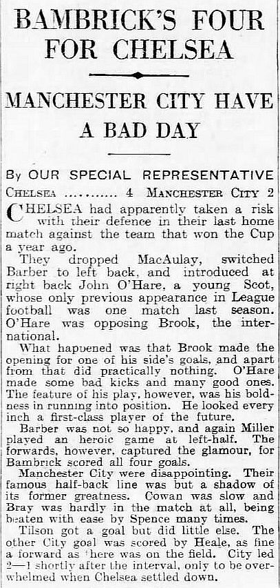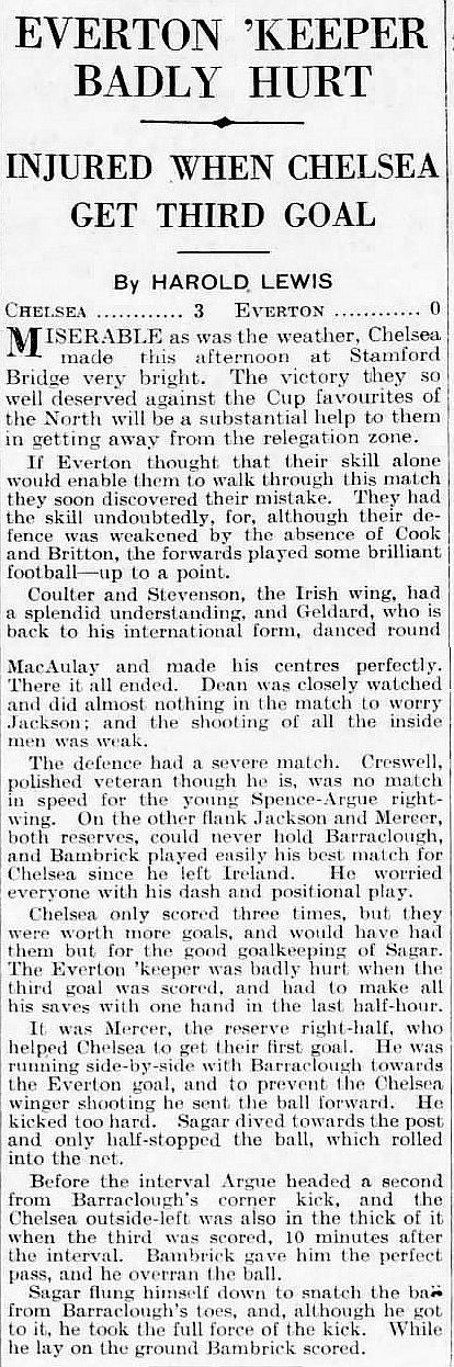 1 Vic Woodley, 2 George Barber, 3 Bob MacAulay, 4 John Hutcheson, 5 Allan Craig, 6 Harold Miller, 7 Dicky Spence, 8 James Argue, 9 Joe Bambrick, 10 Harry Burgess, 11 William Barraclough |