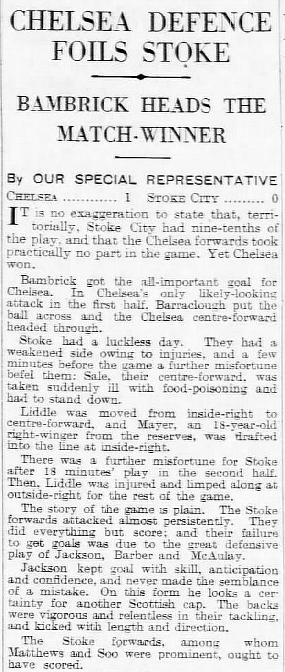 Norman Lewis, Bob McGrory, Billy Spencer, Arthur Tutin, Jack Bamber, Harry Sellars, Stanley Matthews, Wilf Mayer, Bobby Liddle, Frank Soo, Joe Johnson |