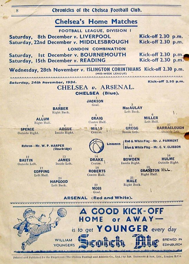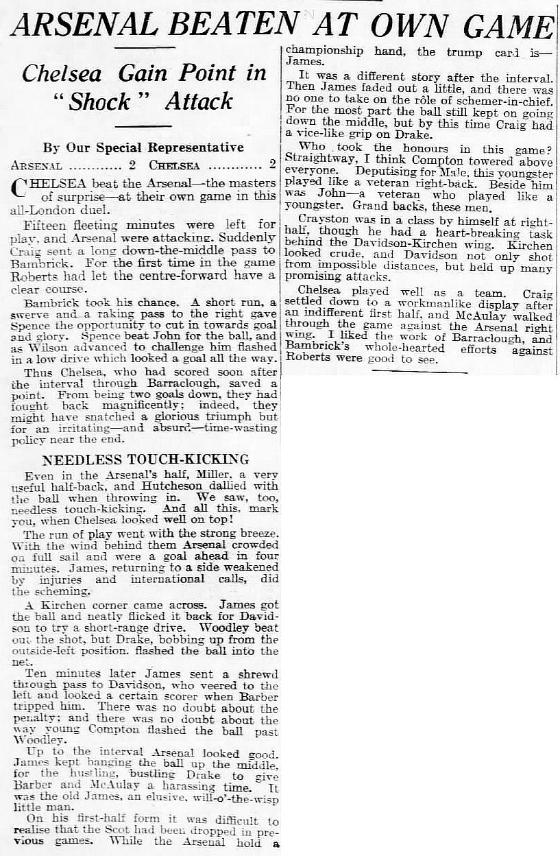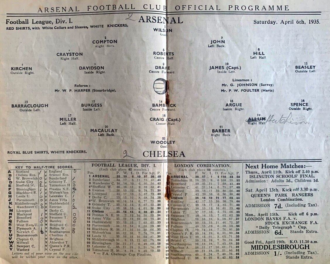 Alex Wilson, Les Compton, Bob John, Jack Crayston, Herbie Roberts, Frank Hill, Alf Kirchen, Bobby Davidson, Ted Drake, Alex James, Pat Beasley |