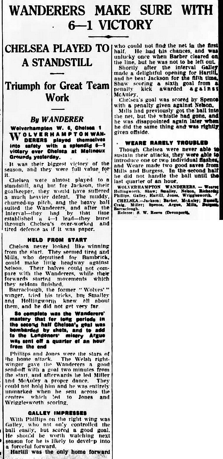 Wolverhampton Wanderers (4) 6 Chelsea (1) 1