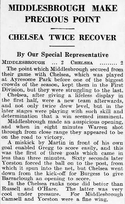 Fred Gibson, Jack Jennings, Bobby Stuart, Billy Brown, Bob Baxter, Jack Martin, Ralph Birkett, George Camsell, Benny Yorston, Tim Coleman, Freddie Warren |