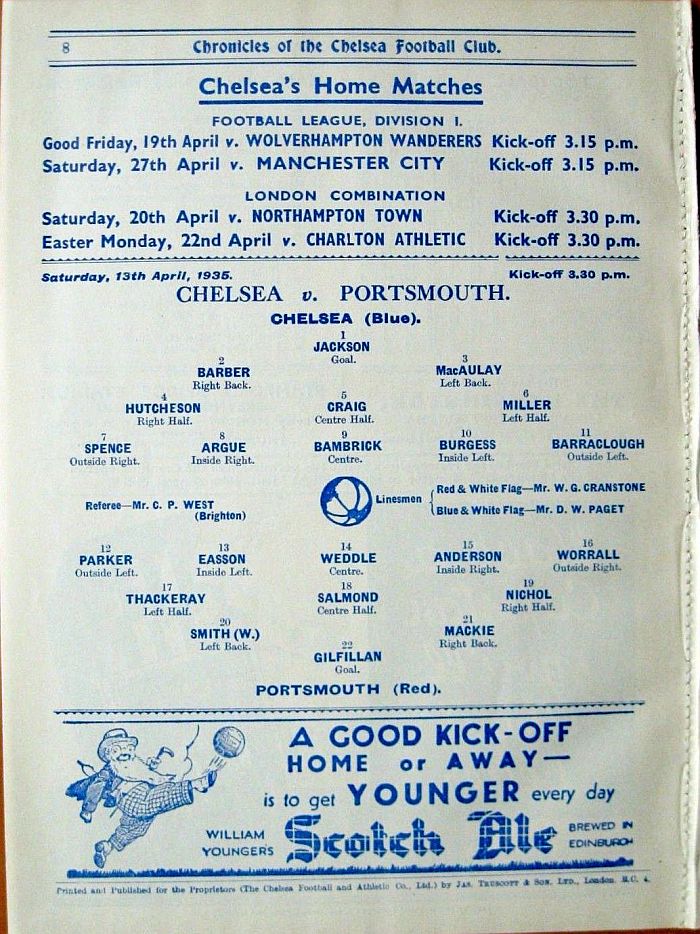 1 John Jackson, 2 George Barber, 3 Bob MacAulay, 4 John Hutcheson, 5 Allan Craig, 6 Harold Miller, 7 Dicky Spence, 8 James Argue, 9 Joe Bambrick, 10 Harry Burgess, 11 William Barraclough |