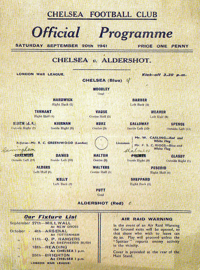 Vic Woodley, George Hardwick, J Johnson, Bob Griffiths, Peter G Vause, Sam Weaver, C Smith, Tommy Kiernan, George Kurz, Joe Payne, Dickie Spence |