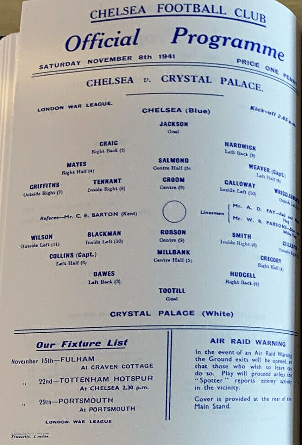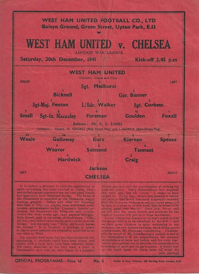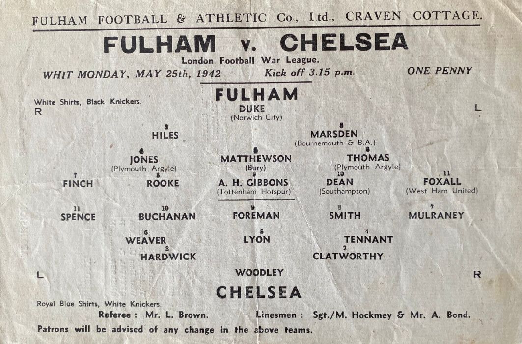 Bartram, Cann, Mordey, George C Smith, Oakes, Whittaker, Revell, Gibbs, Welsh, Lancelotte, Hobbis |