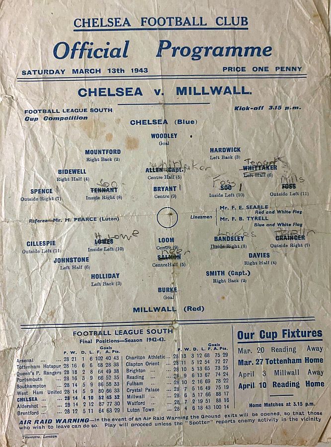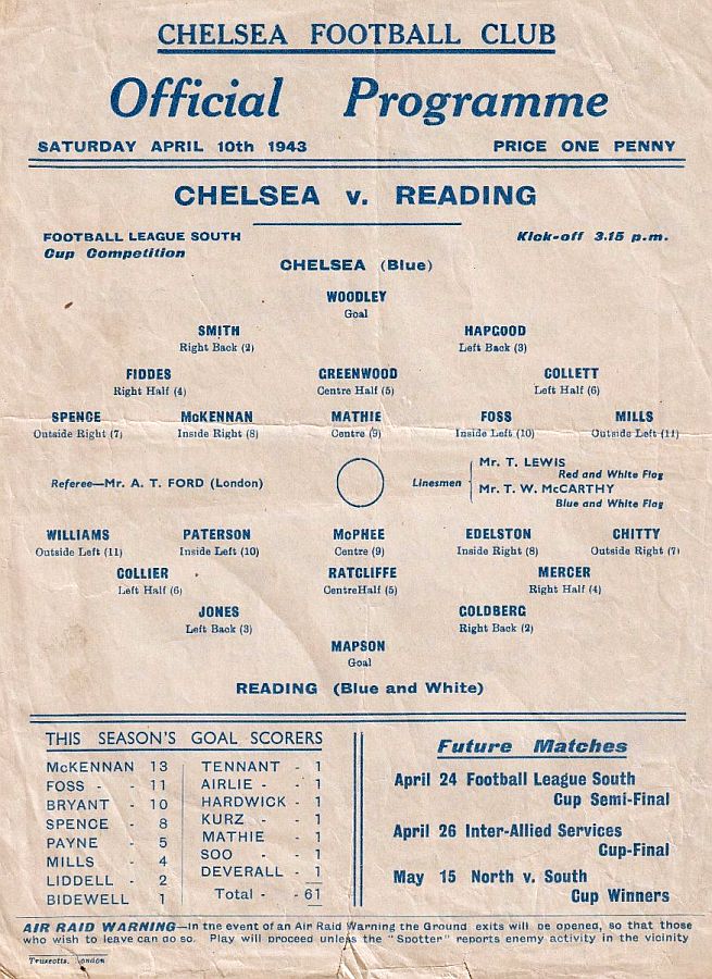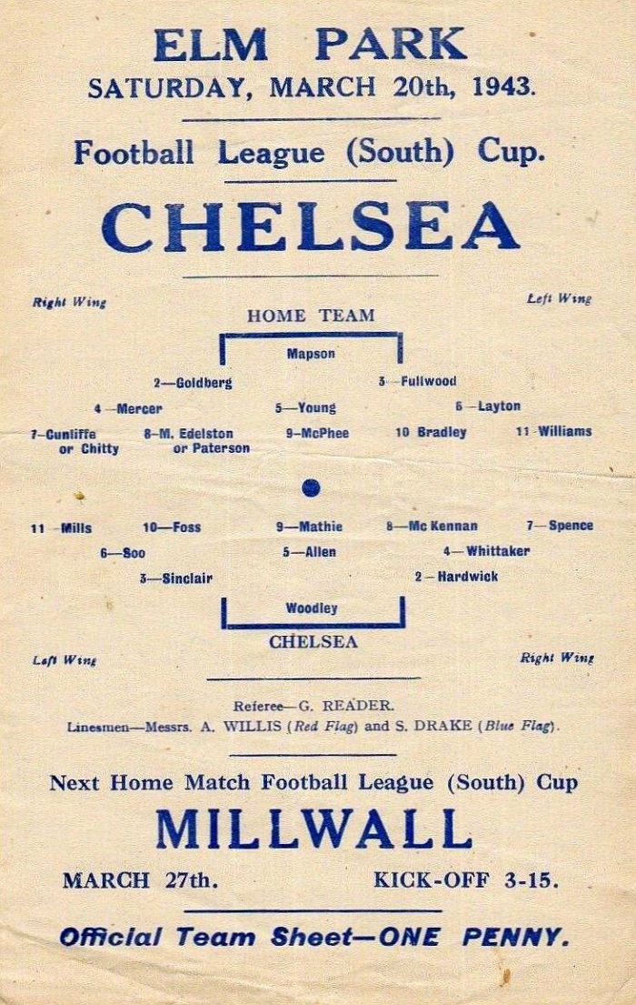 Vic Woodley, Reg C Mountford, George Hardwick, Sid Bidewell, William Whittaker, Albert Tennant, Dickie Spence, Frank Soo, Dave Mathie, Dickie Foss, George Mills |