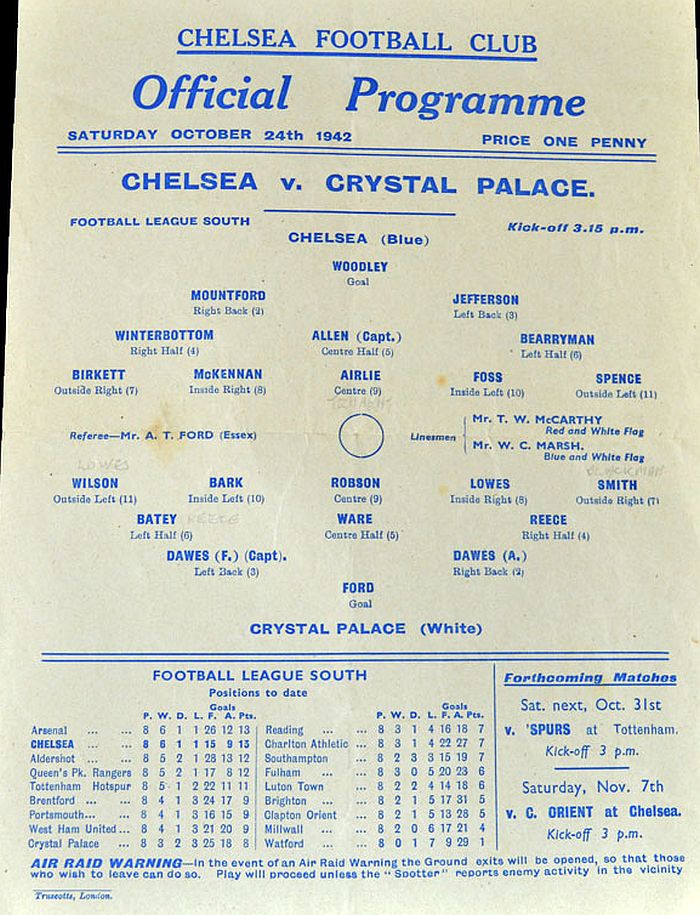 Vic Woodley, Alec White, George Hardwick, Albert Tennant, Jimmy Allen, Sam Weaver, Dickie Spence, Seton Airlie, Joe Payne, Len Butt, Dickie Foss |
