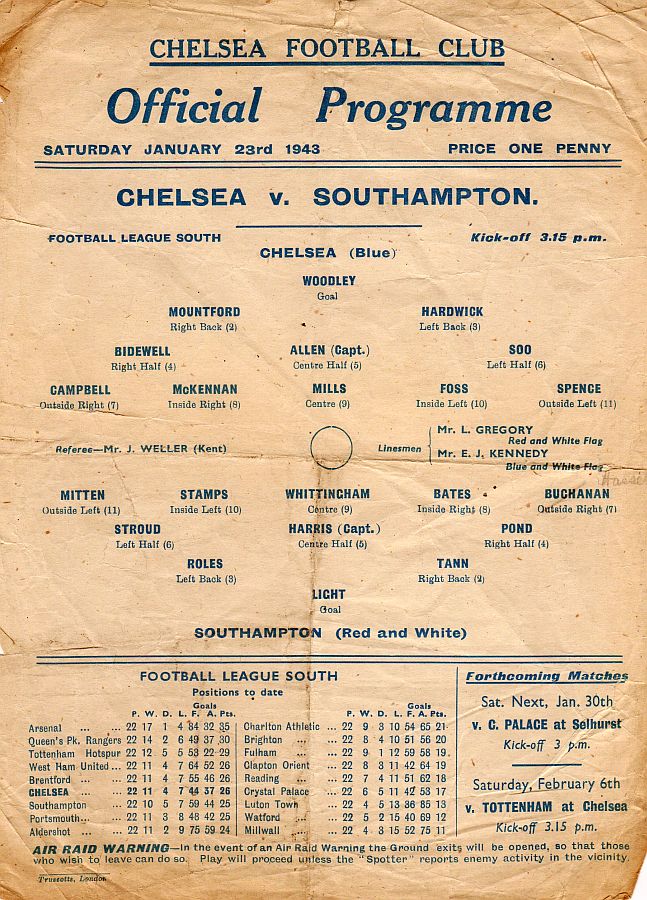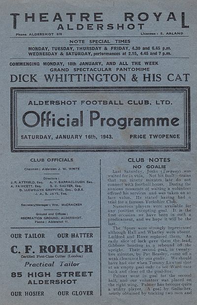 Saturday, 16th January 1943 at 15:00 |