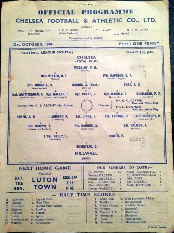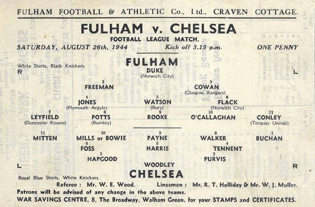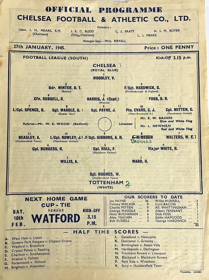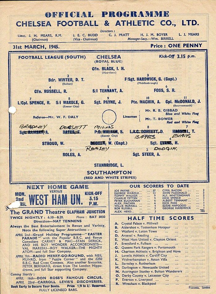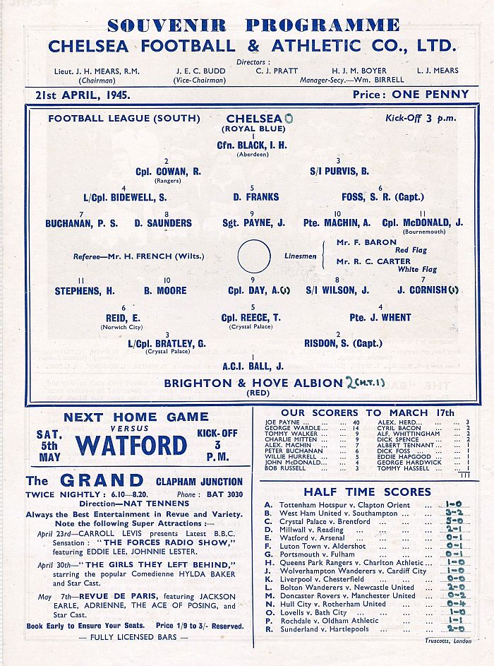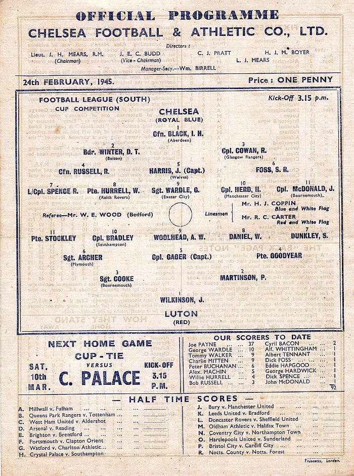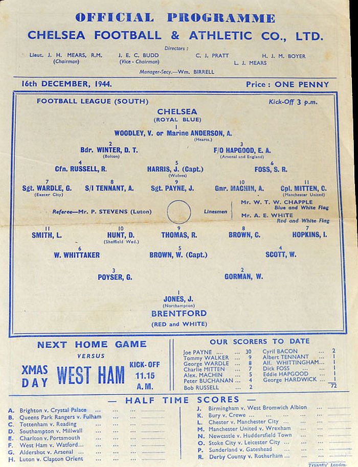 Vic Woodley, Danny Winter, George Hardwick, Robert Russell, John Harris, Dickie Foss, Peter Buchanan, Tommy Walker, Joe Payne, Albert Tennant, Charlie Mitten |
