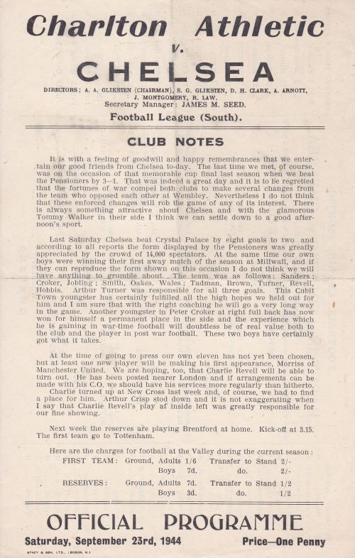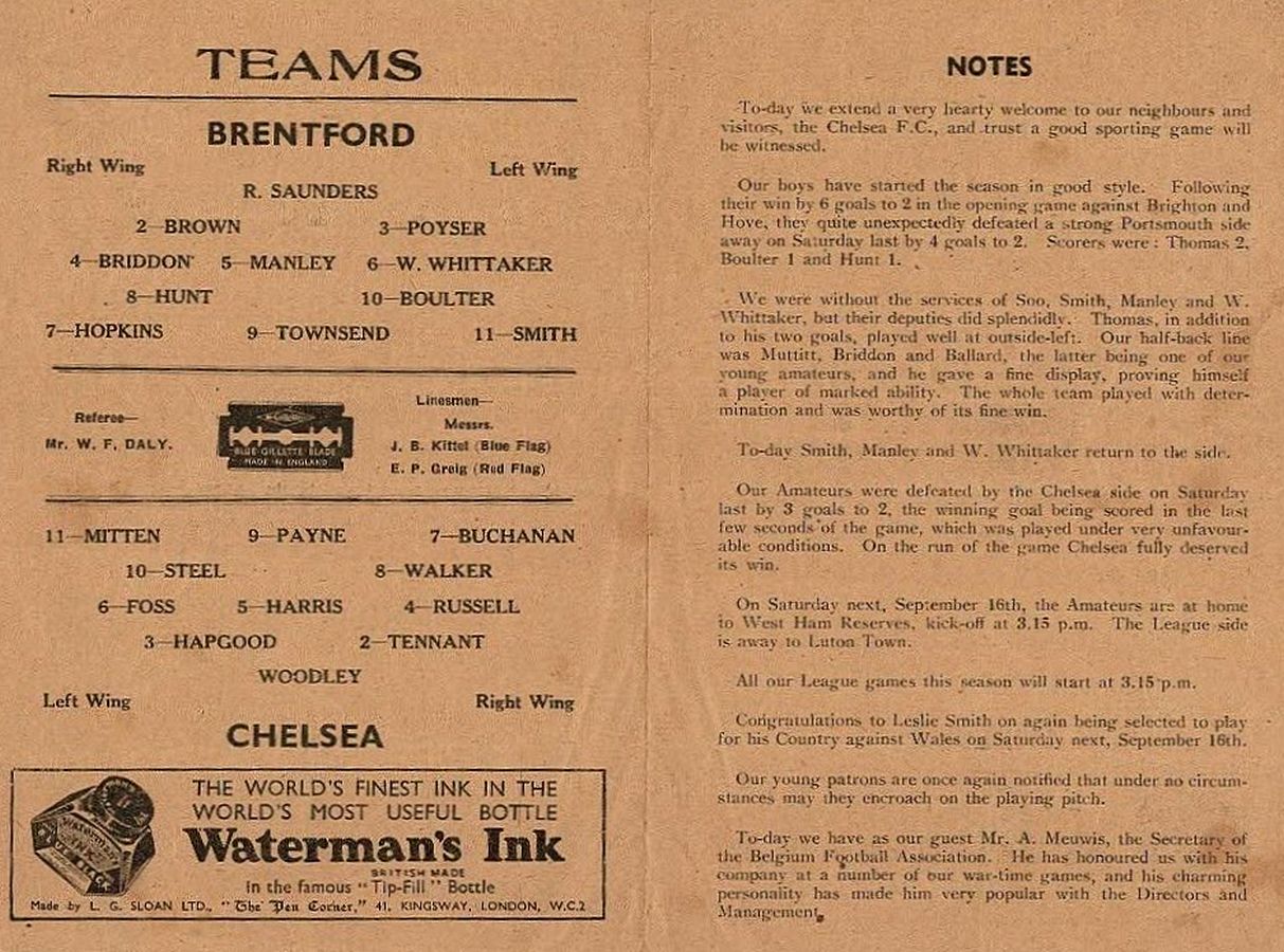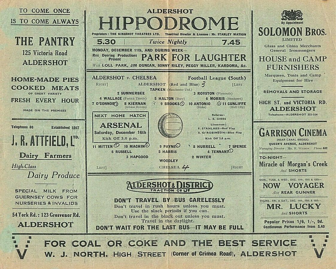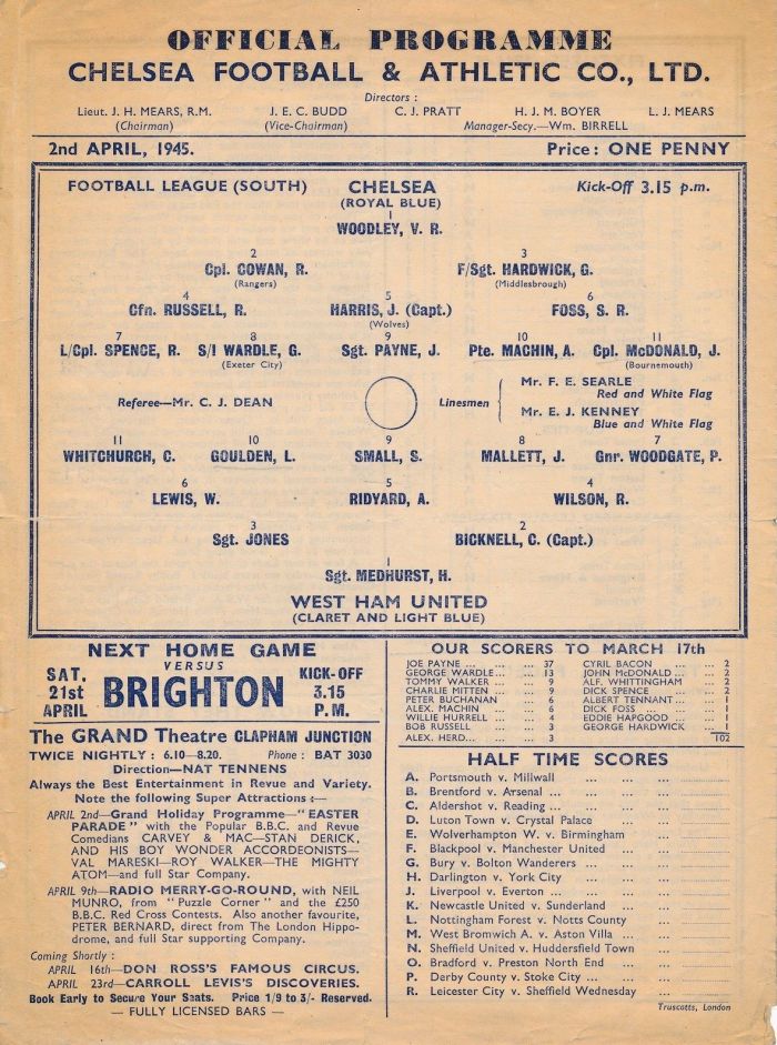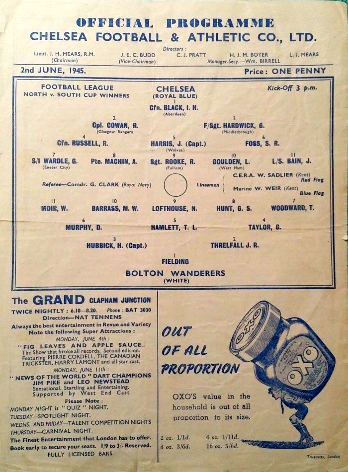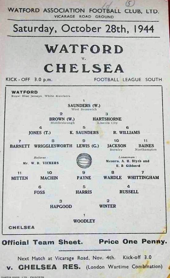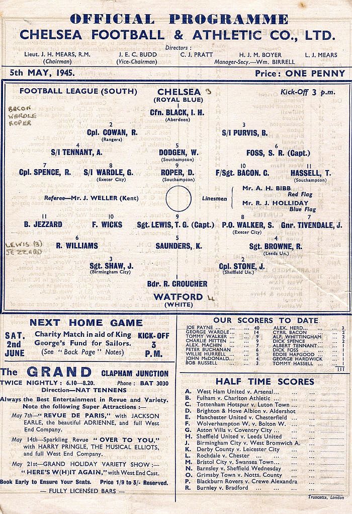Vic Woodley, Danny Winter, George Hardwick, Robert Russell, John Harris, Dickie Foss, Peter Buchanan, Tommy Walker, Joe Payne, Albert Tennant, Charlie Mitten |