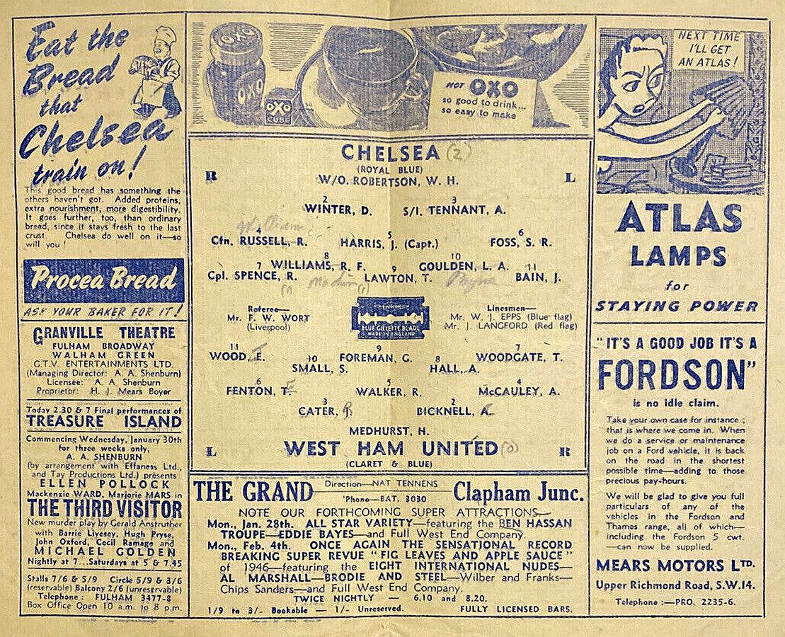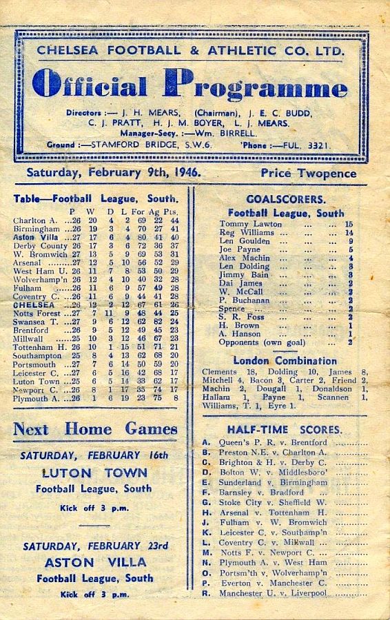 | Home | CHELSEA FOOTBALL CLUB | 1945W | 1946 |