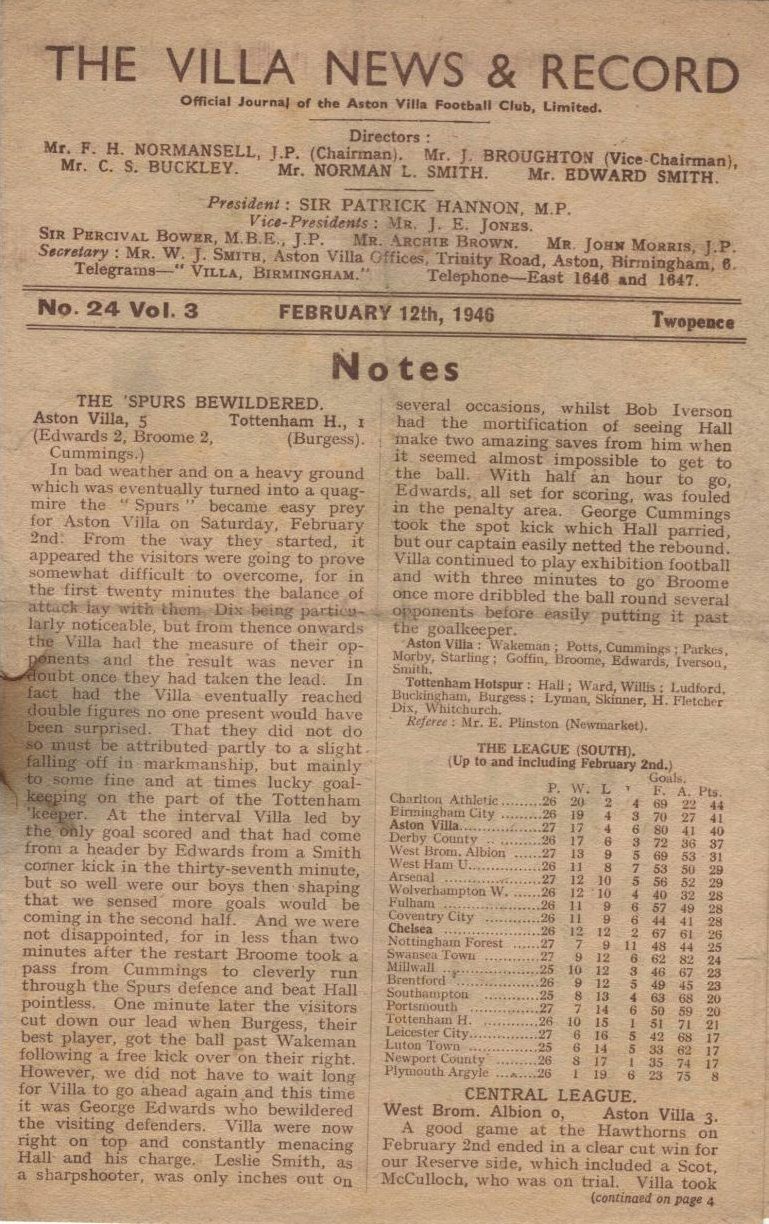 | Date: | Tuesday, 12th February 1946 at 14:30 | Report | <>More Reports | Teams | Table |