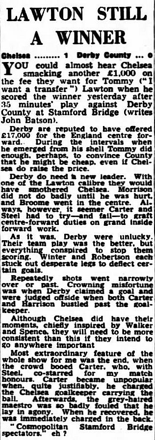 1 William Robertson, 2 Daniel Winter, 3 Sid Bathgate, 4 Alex Machin, 5 John Harris, 6 Ken Armstrong, 7 Dicky Spence, 8 Tommy Walker, 9 Tommy Lawton, 10 Len Goulden, 11 Len Dolding |