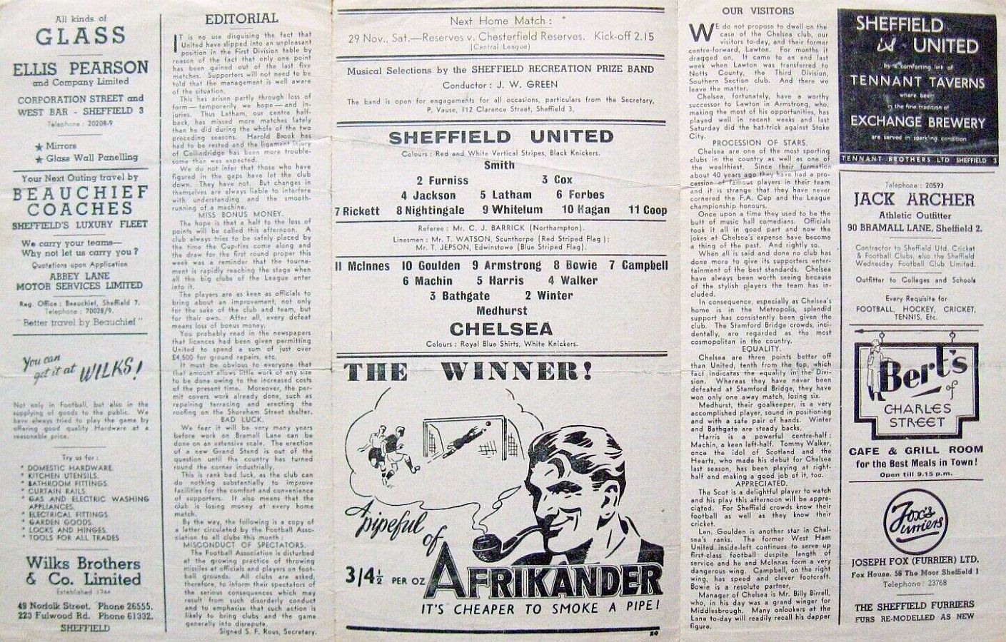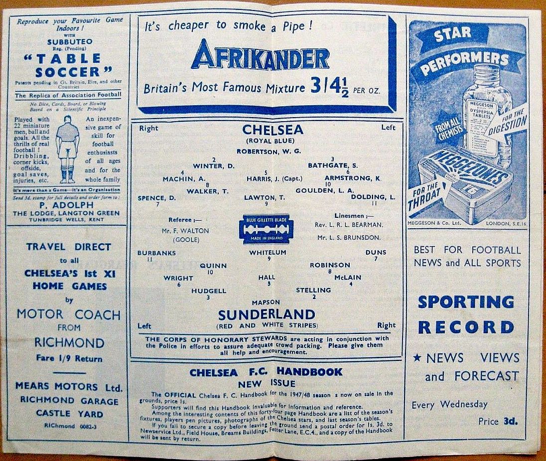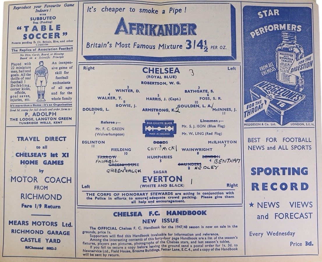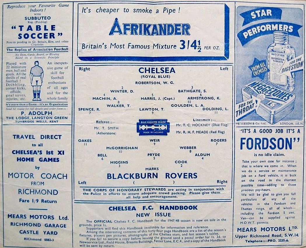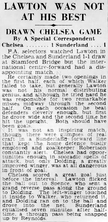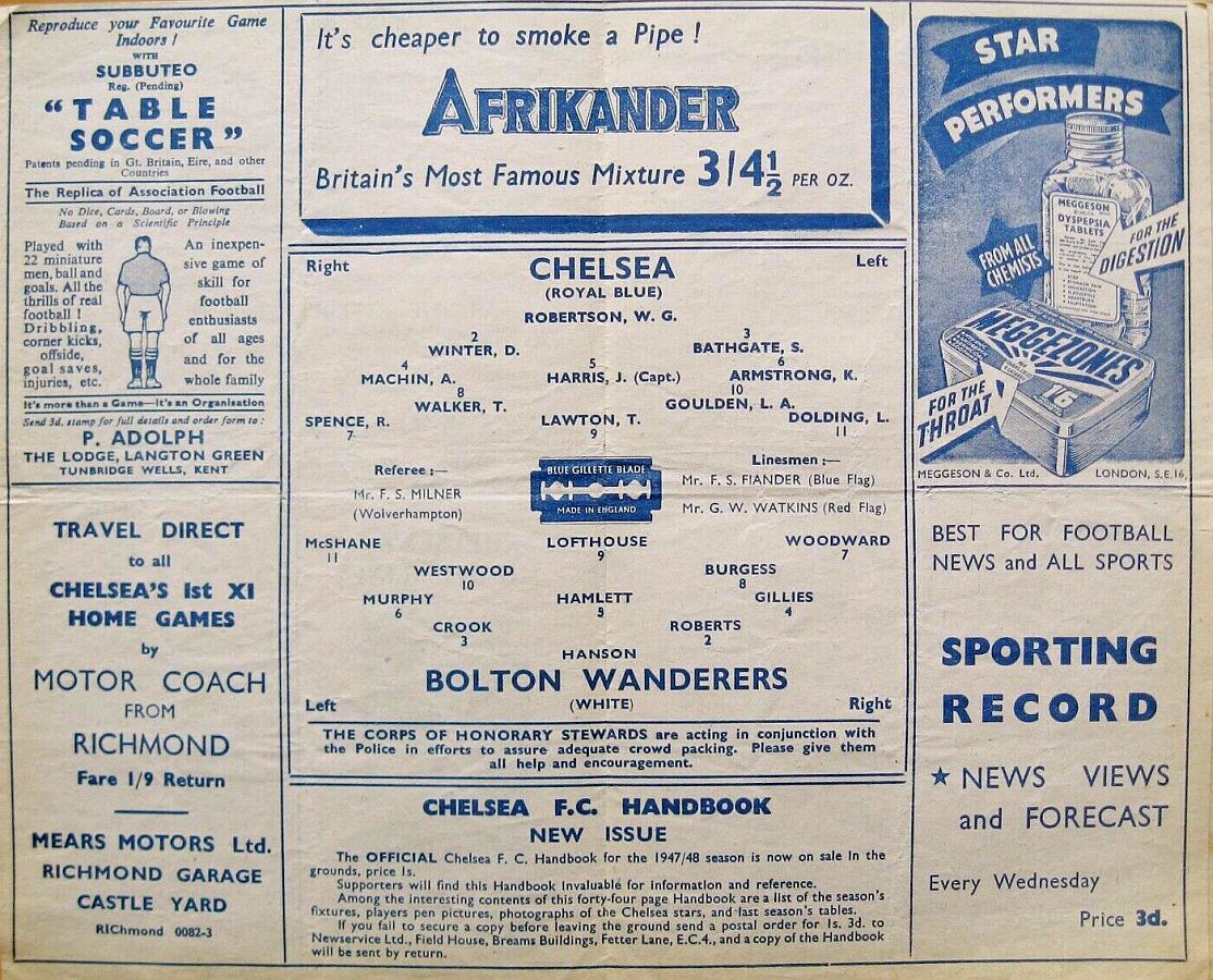 1 Harry Medhurst, 2 Freddie Lewis, 3 Sid Bathgate, 4 Ken Armstrong, 5 John Harris, 6 Philip McKnight, 7 Charles Dyke, 8 Roy Bentley, 9 Hugh Billington, 10 Tommy Walker, 11 Benny Jones |