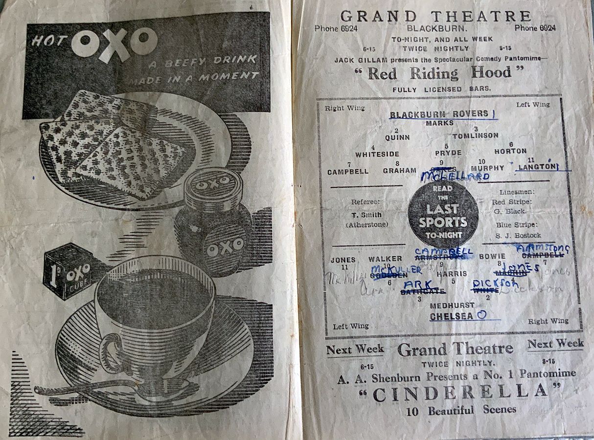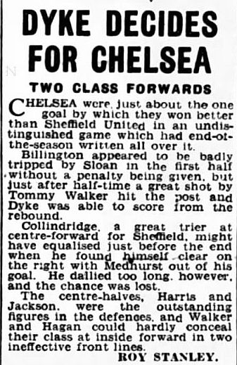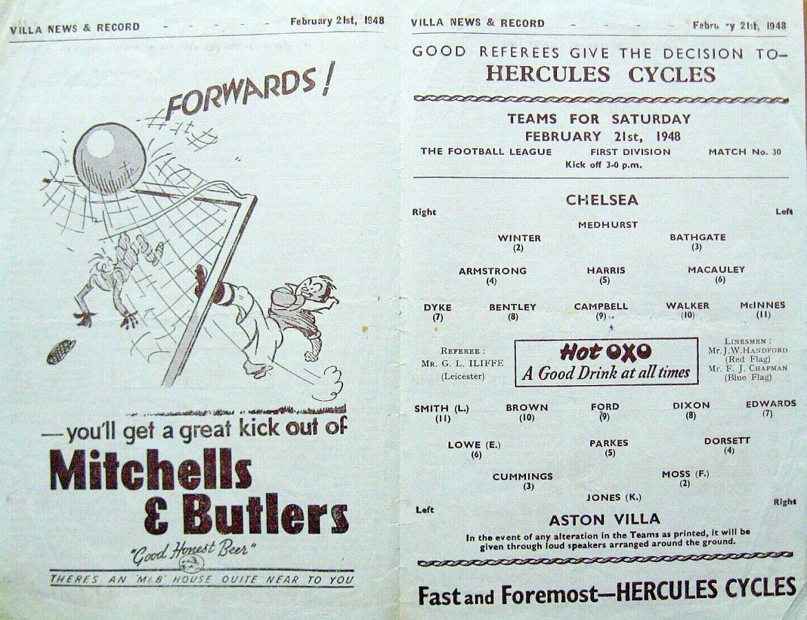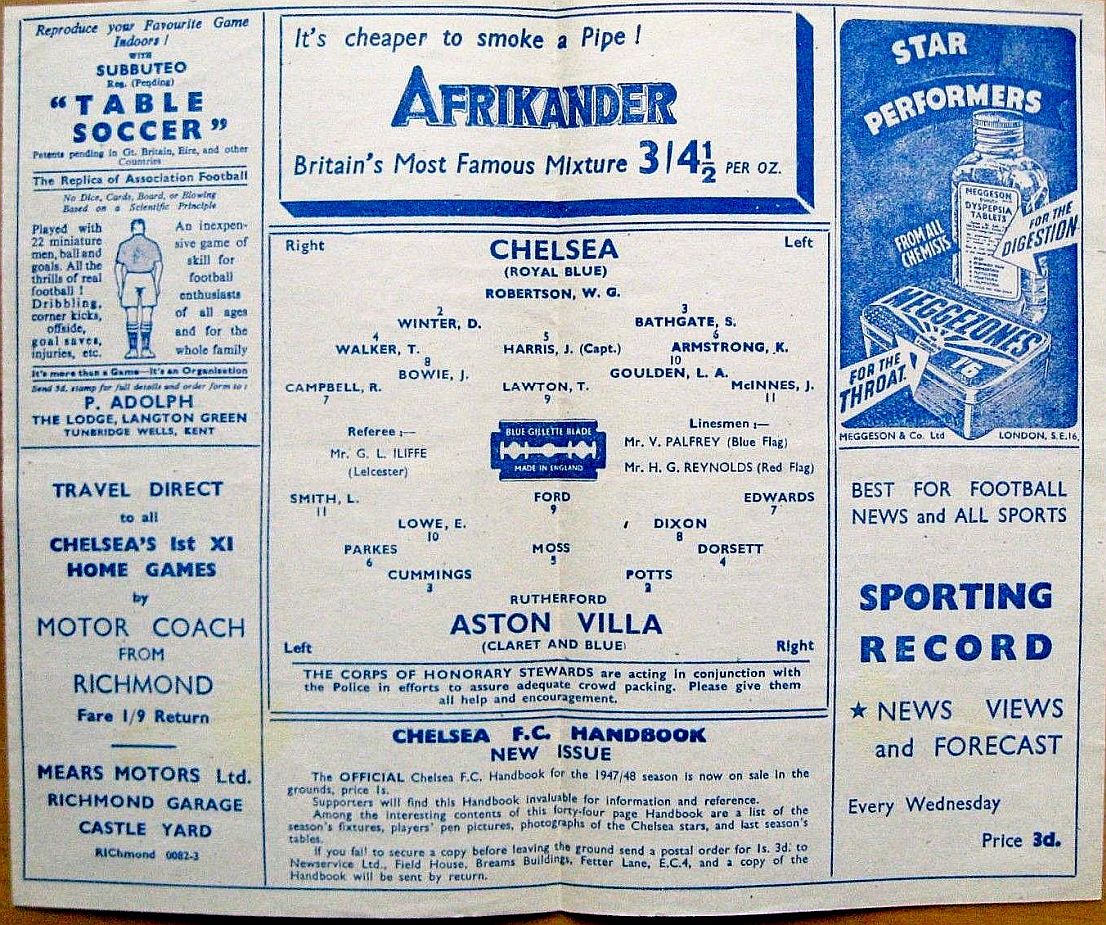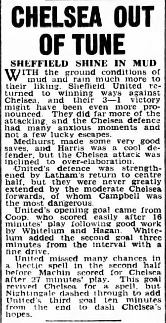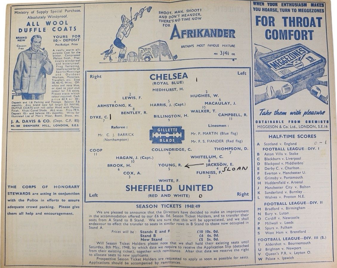 1 Harry Medhurst, 2 Freddie Lewis, 3 Sid Bathgate, 4 Ken Armstrong, 5 John Harris, 6 Philip McKnight, 7 Charles Dyke, 8 Roy Bentley, 9 Hugh Billington, 10 Tommy Walker, 11 Benny Jones |