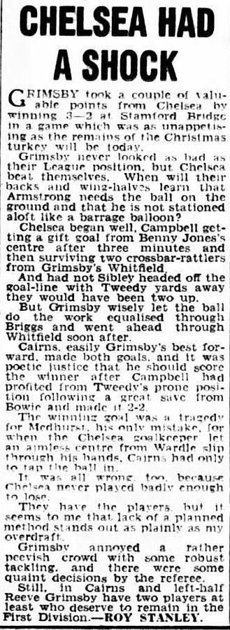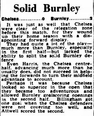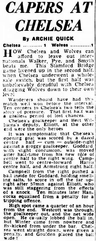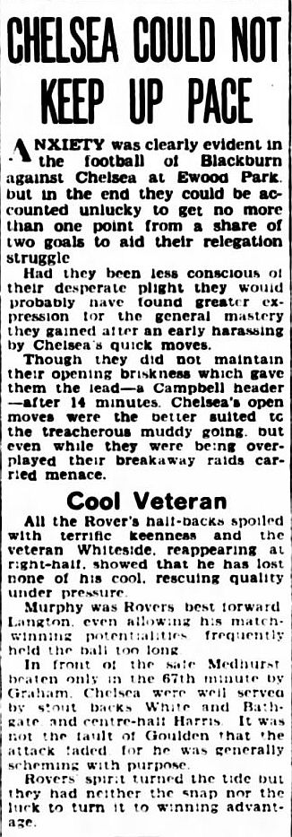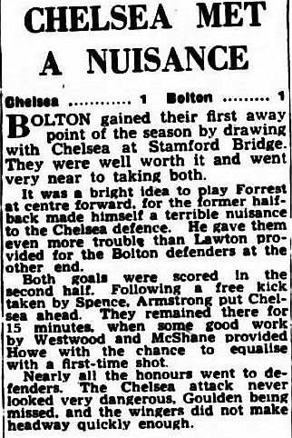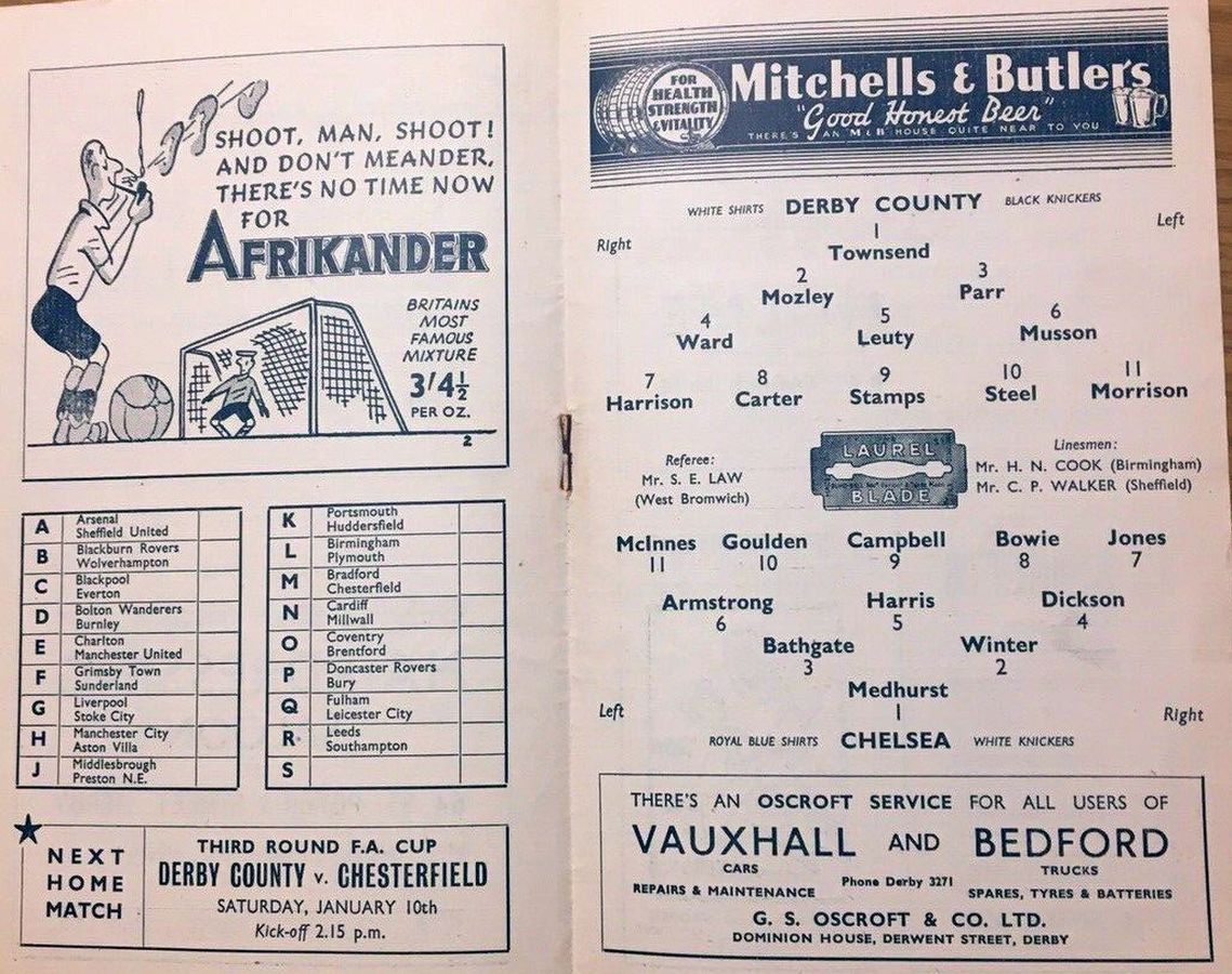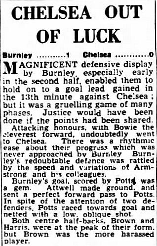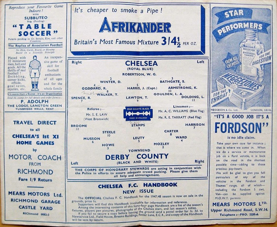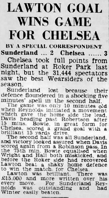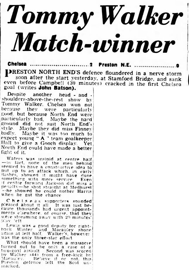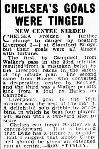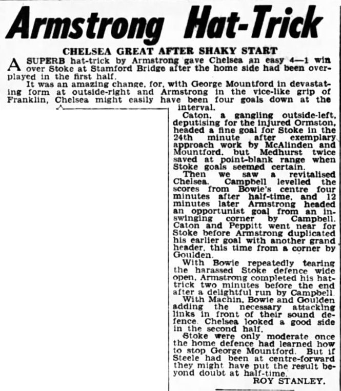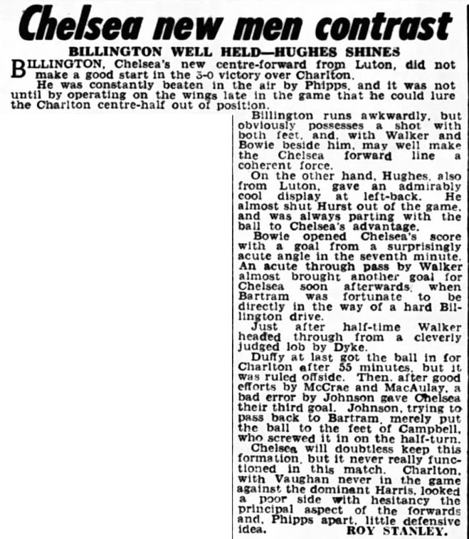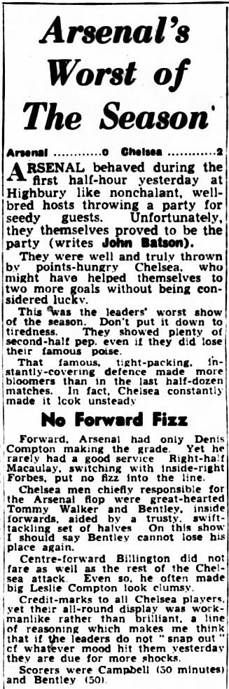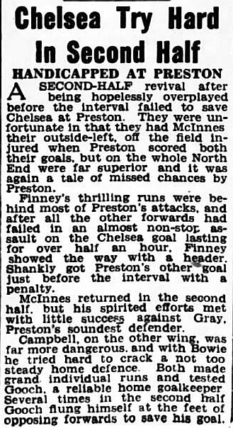 1 William Robertson, 2 Freddie Lewis, 3 Billy Hughes, 4 Ken Armstrong, 5 John Harris, 6 Jimmy Macaulay, 7 Charles Dyke, 8 Roy Bentley, 9 Hugh Billington, 10 Len Goulden, 11 Bobby Campbell |